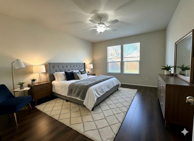 Two weeks free rent! Updated, bright, and airy open floor plan! This home features stunning granite countertops, and sleek wood floors throughout the entry, living, dining, and kitchen areas. The kitchen is equipped with stainless steel appliances, kitchen island and the refrigerator is included. Large living room with plenty of natural light through a wall of windows. The spacious primary suite and secondary bedrooms feature upgraded bathrooms for a modern feel. Additional highlights include a tiled utility room with a full-size washer and dryer, an attached two-car garage with floor coating, and a covered patio overlooking a large backyard. Enjoy energy efficiency with LED lighting and upgraded fixtures throughout. For peace of mind, a security system and surveillance cameras are also included. Located in a premier community with a resort-style pool, playground, and scenic trails. Enjoy easy access to major employers, shopping malls, outlets, and dining.