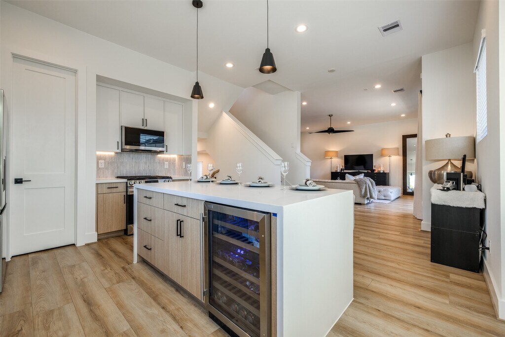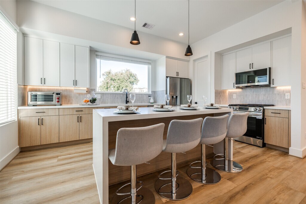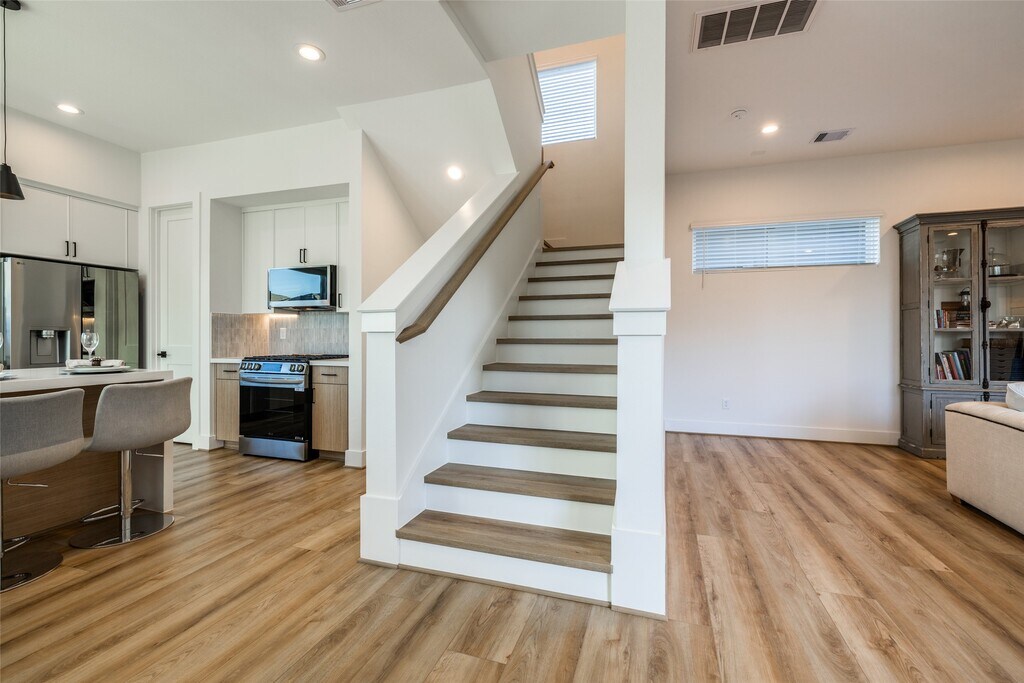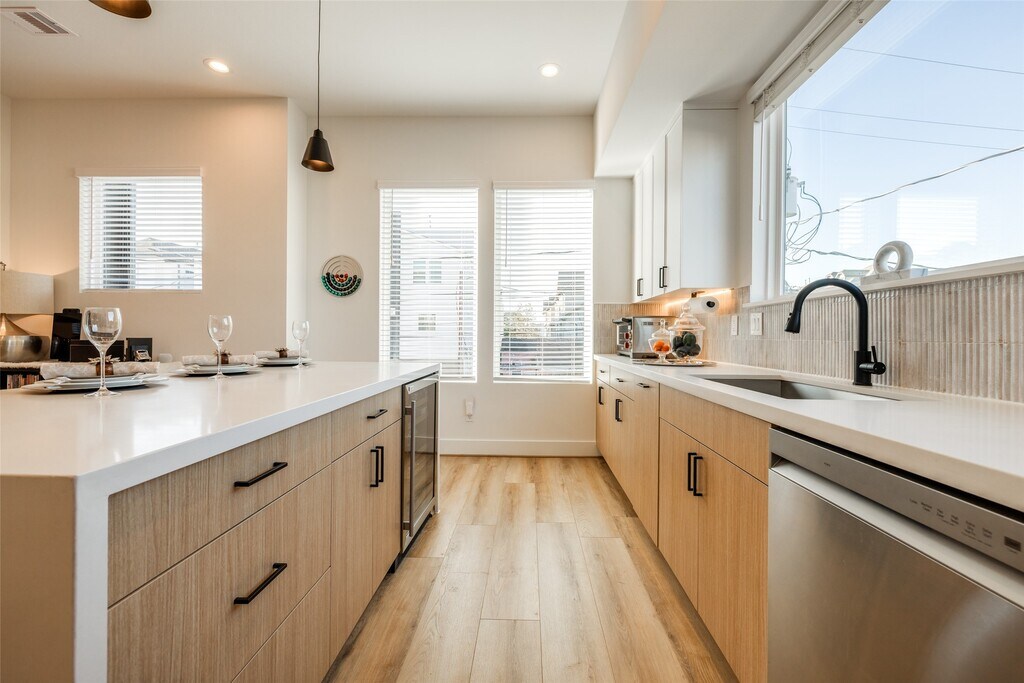 Fabulous 2025 East Downtown modern 3 bed,3/1 bath walking distance to Ninfa's,El Tiempo,Roostar,Oso's Coffee,Johnathan's Rub,Navigation's open air Esplanade Market & Midway's East River Project. Private driveway,fenced-in backyard & side yard with easy to maintain astro turf. This gorgeous 3-story home has everything you need plus more! Kitchen & bathrooms with stunning designer tilework,modern European style soft-close cabinetry,white quartz countertops,stainless steel smart appliances & wine fridge,wonderful natural light with views of Downtown & East River,champagne bronze plumbing fixtures,ceiling fans in all rooms,LED recessed lighting,solid-core true shaker doors,large balcony,luxury vinyl plank flooring - no carpet,large 2 car garage with smart garage door opener & storage area. Landlord will allow you to rent 1st floor room only on airbnb,has side door access & she currently rents at $50 per night. Washer,Dryer,refrigerator & wine fridge included in lease MLS# 29904102