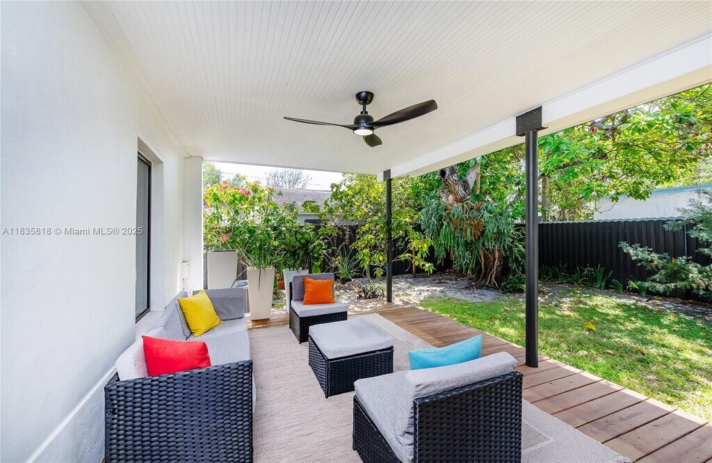 WELCOME TO CASA BELLA – A LUXURY OASIS IN BUENA VISTA! Built in 2002 and FULLY UPDATED in 2024, this 3BR/2BA blends MODERN ELEGANCE with TROPICAL SERENITY. Features BOSCH CHEF KITCHEN with 10' ISLAND, IMPACT WINDOWS, WOOD FLOORS, UPDATED BATHS, 2021 ROOF, RECESSED LIGHTING, ROMAN SHADES, AMPLE CLOSETS, and DOUBLE GLASS ENTRY DOORS. Bright OPEN LAYOUT flows to 400 SF COVERED DECK surrounded by AVOCADO and JASMINE TREES, GRAPEVINE, MULBERRY and VIBRANT FLOWERS. FULLY FENCED with GATED DRIVEWAY. VIVINT SECURITY SYSTEM. WALK to DESIGN DISTRICT & MIDTOWN; mins to WYNWOOD, DOWNTOWN, SOBE and MIAMI Airport. FULLY FURNISHED, TURNKEY & MOVE-IN READY. Available 3 to 6 months max. Non smokers only.