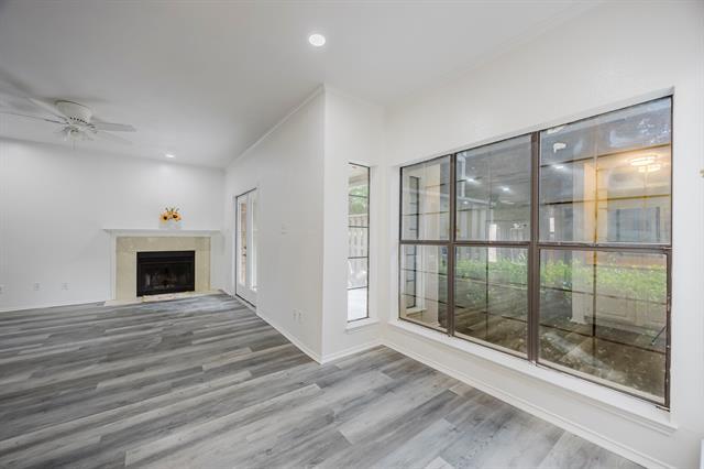 Completely refreshed and ready for your immediate move in. New flooring, paint, countertops, sinks and faucets. Enjoy the freshness, and this convenient location with a pool, private patio and open green space behind you. Trash and water paid; you only pay electricity and internet. Comes with an assigned covered parking space along with additional visitor spaces for guests. For additional peace of mind the property is gated and secured. River Legacy Park is across the street. DFW airport, shopping, restaurants, grocery stores are all conveniently close by.