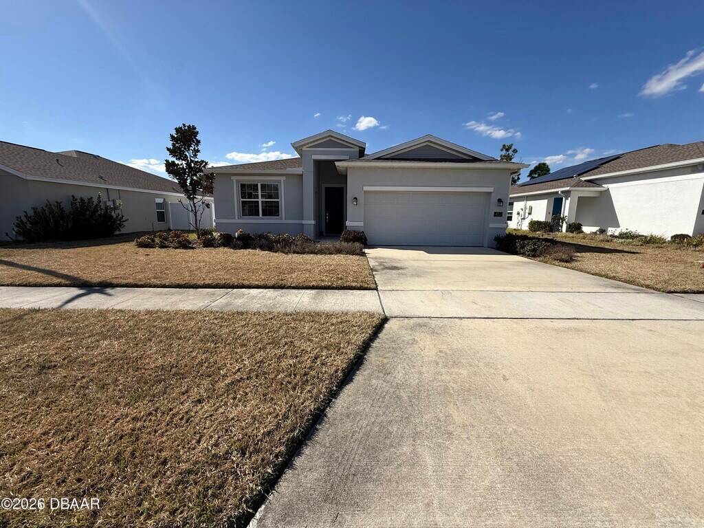 Do not miss your opportunity to rent this four bedroom three bedroom home in Majestic Oaks in Edgewater! This home was built in 2023 and is still practically brand new! Home offers a private entrance mother in law suite with full bathroom,kitchen,separate laundry,and spacious bedroom! Main house has three bedroom split plan with open kitchen,dining and living room area! House has a back patio that backs up to a wooded area,extremely private. First and security to move in. Must prove income and do background check.