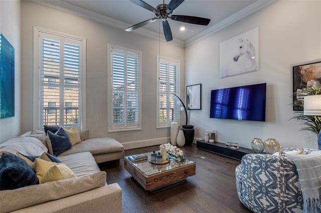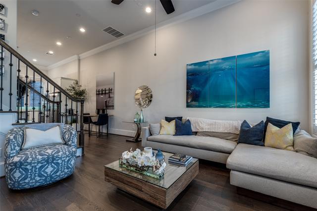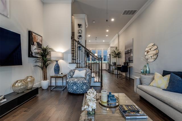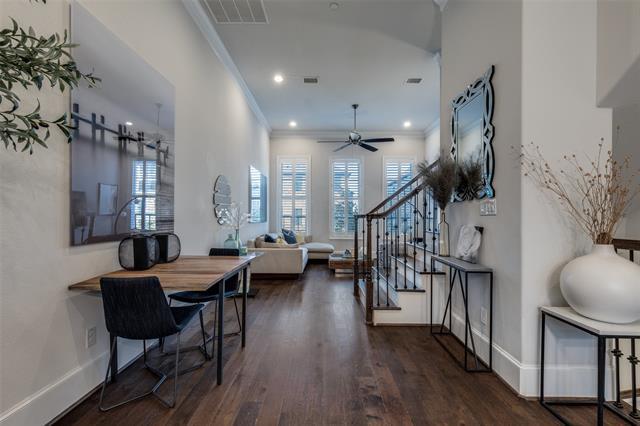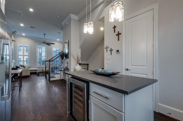 Lease in unparalleled style in this gorgeous luxury townhome in the highly sought after Addison Grove community. This stunning design and open floor concept features crystal quartz countertops, kitchen island, premium Bosch stainless steel appliances, 12 foot ceilings, natural hardwood flooring, plantation shutters, built in wine fridge, and dual primary bedroom closets. Washer, dryer, and refrigerator included! Residents receive a complimentary membership at the Addison Athletic Club where you can enjoy the full natatorium, weights, running, basketball, tennis & pickleball courts, and the seasonal outdoor pool with waterfall is great for entertaining guests in the summer. It's everything that you need in a convenient location walking distance from plenty of dining, shopping, and nightlife with easy access to the Dallas North Tollway.