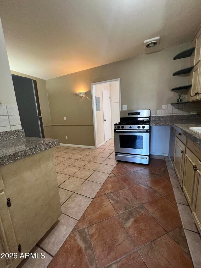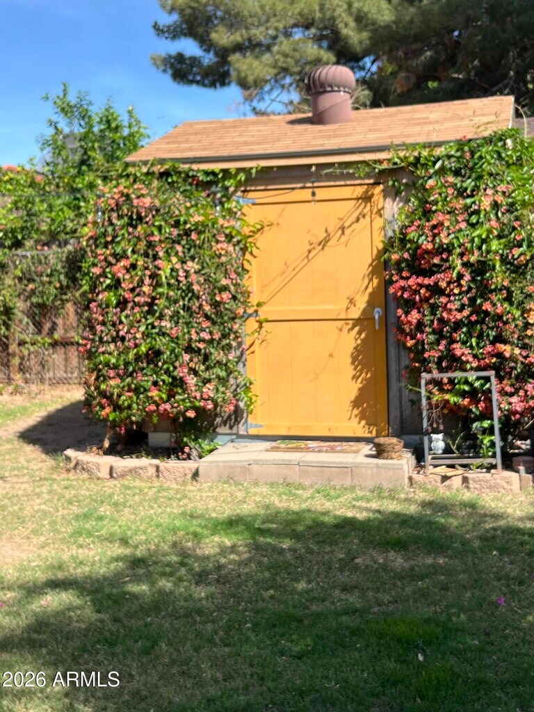 This charming updated 1952 brick ranch in the heart of Rancho Ventura offers the perfect blend of mid-century character and modern comfort. Tucked away on a quiet,tree-lined street just minutes from Arcadia and Old Town Scottsdale. This 3-bedroom,2-bathroom home is a rare find in one of Phoenix's most convenient locations. Bright & Spacious. Over 1,600 sq. ft. of move-in-ready living space. Kitchen Features a gas stove,new refrigerator,dishwasher and plenty of counter space for home-cooked meals. Step outside to your own private retreat.The 9,927 sq. ft. irrigated lot features an extended brick patio perfect for weekend BBQs and outdoor dining. Lush green lawns and mature fruit trees. Irrigation included with landscaping provided by owner. Plenty of space for gardening or just enjoying the Arizona sunsets. Into chickens? Small coop and chicken approved neighborhood. Alleys are gated no random cars driving thru. 2 sheds. So much storage! Separate bonus room with private entry. New laminate flooring. You are just a short drive from the dining and nightlife of Camelback Corridor,the hiking trails at Piestewa Peak,and quick freeway access for a seamless commute to Downtown or the airport. Available for immediate move-in.