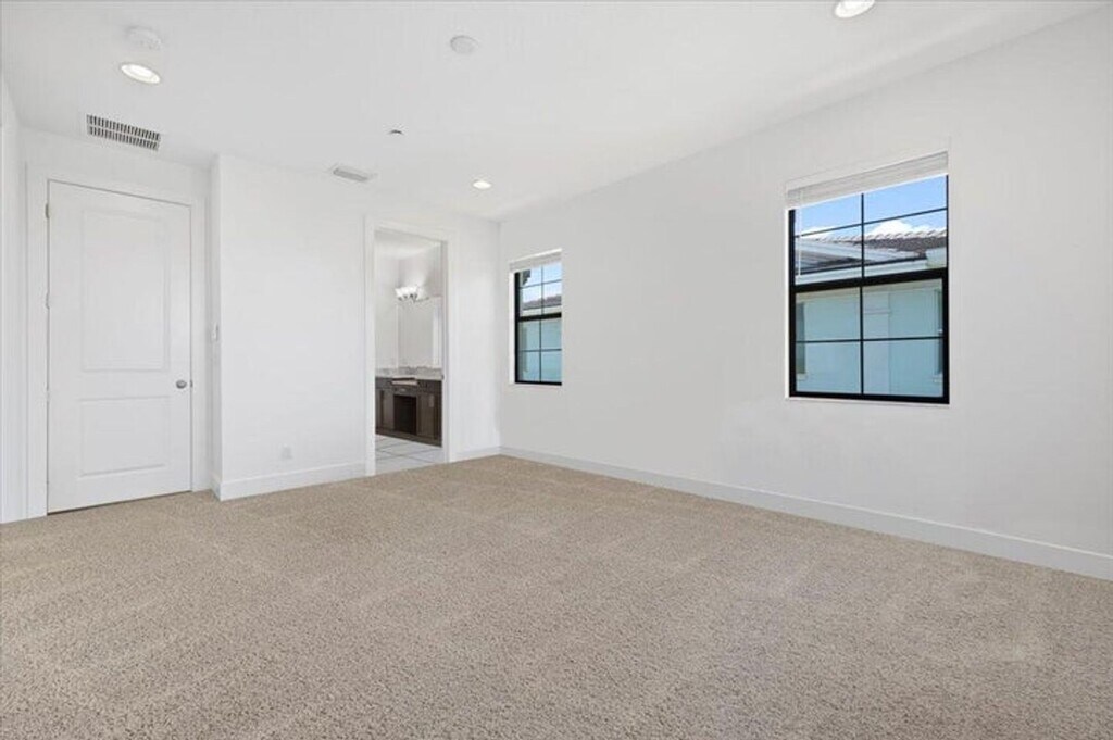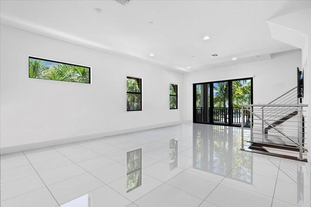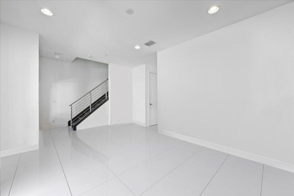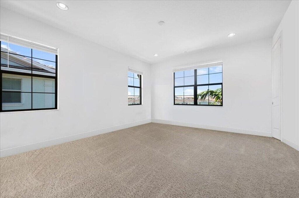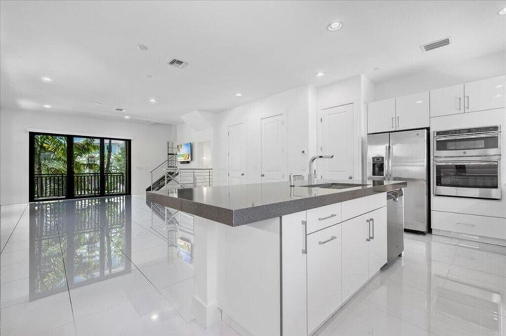 Courtesy of Trillion Properties LLC. Alton corner townhome with upgraded metal stair railings, wood stairs and an automatic screen enclosure on your 10X20 balcony facing a neighborhood green space. The 9 extra windows add natural light and along with the 10 foot ceilings they create a living experience more similar to a single family home. The large and open kitchen features an oversized island, 3 walls of cabinetry with quiet close doors, a beverage/wine fridge, exterior vented hood, double oven and high level quartz counters. Added conveniences include motorized shades, oak closet shelves, a rare full soaking tub in the primary bath, HD camera surveillance, intrusion detection system, Ring doorbell and My Q camera keypad garage door opener. Walk easily to both the Alton Town Center and the Club at Alton.