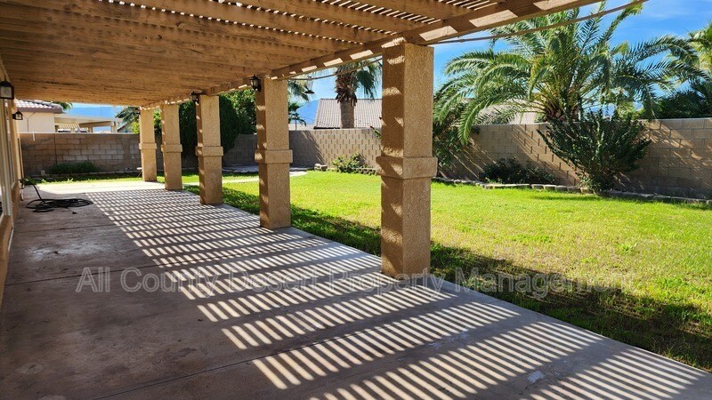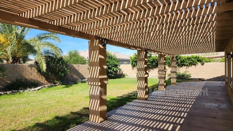 Welcome to this beautiful home located in the gated Shadow Hills community of North Indio. From the moment you step inside, you’re welcomed by a spacious family room filled with natural light and accented by soaring high ceilings, creating an open and inviting atmosphere. The open-concept, eat-in kitchen is perfect for both everyday living and entertaining, offering ample cabinetry and generous counter space for the home chef. The layout flows seamlessly into the living area, making it ideal for gatherings or relaxing evenings at home. Step outside to a private backyard featuring a large covered patio, perfect for outdoor dining, entertaining, or simply enjoying the desert lifestyle. The primary suite is a true retreat, boasting a massive walk-in closet and a private en-suite bathroom with dual sinks and a separate soaking tub and shower. Additional highlights include RV parking, a rare and highly desirable feature. Situated in a quiet, well-maintained gated community, this home offers comfort, space, and convenience—just minutes from shopping, dining, and easy freeway access. Tenants pay 75% of all utilities. HOA fees are included in the rent. Please note: The casita is rented separately and is not included with this home. The casita tenant has a private entrance, no access to the rear yard, and is required to park in the exterior RV space only. All applicants must pass a comprehensive background screening, including income verification and landlord references. Renter's insurance is required. All applicants must have the following: a monthly income of at least 3 times the monthly rent, a good rental history, and an acceptable credit score. If you see this home advertised online for less than the rental amount quoted here, the ad is a SCAM. We are the only authorized agent for this property. Please email us a link to any bogus or fraudulent ads so we can report them to the appropriate authorities. Please do NOT send money to anyone who offers keys in exchange for a deposit check - especially if they are out of state. When in doubt, please feel free to contact us.