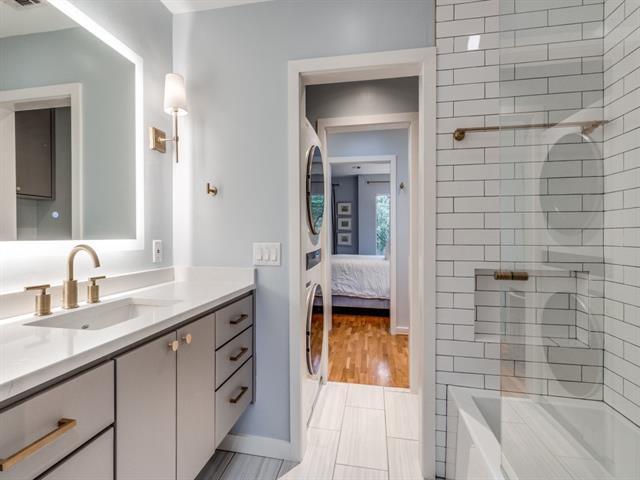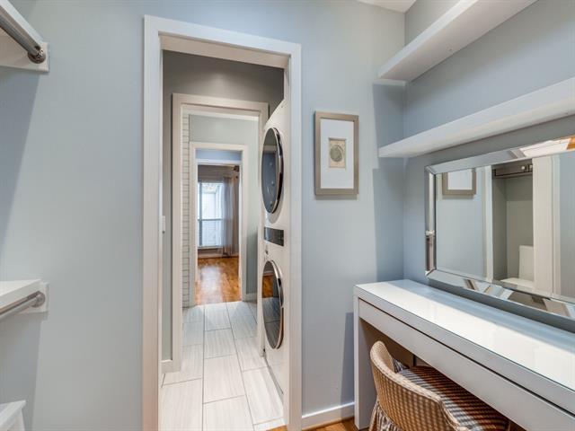 Location, Location, Location! Light filled, 2 bed, 1.5 bath townhome in the heart of Uptown area! Hardwood floors throughout - absolutely no carpet and no upstairs neighbors. Kitchen features granite, pantry, breakfast bar, and stainless steel appliances. Open concept living with dining room area. Upstairs, open master bedroom with 2 walk in closets and just renovated gorgeous master bathroom. Brand new stack washer and dryer. Inviting front entrance on Travis and backs to a lovely courtyard. Views of greenery from all windows. 1 car reserved carport space. Fabulous location near Cole Park, Katy Trail, West Village, Knox Henderson & transportation. Landlord (Owner) is a licensed Texas Realtor.