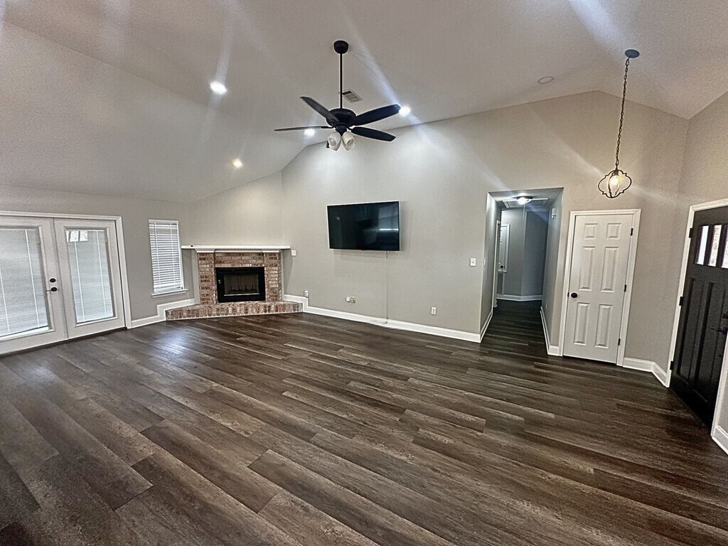 This beautiful 3 Bedroom/ 2.5 Bathroom Home will take your breath away. This home features: -Stainless Steel Appliances -French Door Refrigerator -Dining Area -Breakfast Knook with a Coffee Bar -Large Kitchen Island with Outlets -Large Pantry -Granite Countertops -Beautifully Centered Fireplace -Wood Flooring -High Ceilings -Large Master Walk-in Closet -Large Garden Tub -Large Walk-in Shower -Ceiling Fans and Chandelier Lighting -Along with a Large Yard This home gives you the peace of neighborhood living but the luxury of being out in the open. Contact our Leasing Office for more information.