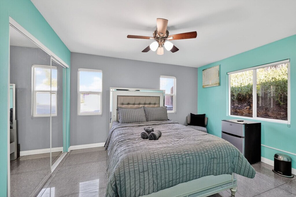 Feel at home in this charming and spacious 3-bedroom, 3-bath home in the heart of San Diego! This bright and welcoming home features an open-plan living room with plush seating and abundant natural light, a dining area that seats six comfortably, and a fully equipped, modern kitchen with stainless appliances and quartz countertops. Each of the three bedrooms is a private sanctuary, with cozy beds, clean linens, ample closet space, and its own full bathroom. Outside, enjoy a small but inviting fenced patio with seating. Parking is available. The location blends urban convenience and neighborhood warmth. You’re just a short drive or rideshare ride from top San Diego beaches, the dining and nightlife of North Park and Hillcrest, and popular spots like Balboa Park, the Gaslamp Quarter, and downtown. Grocery stores, casual cafés, and local bakeries are all within easy walking distance. Nearby attractions include: Downtown & Waterfront: USS Midway Museum – ~2–3 miles (about 10–15 min drive): Historic aircraft carrier turned museum with decks of exhibits and iconic skyline/bay views. Seaport Village – ~2–3 miles (10–15 min drive): Waterfront shopping & dining with scenic bay views, carousel & stroll paths. Petco Park – ~1.5–2 miles (5–10 min drive): Home ballpark of the San Diego Padres in the lively East Village/Gaslamp area. Gaslamp Quarter – ~1.5–2 miles (short ride): Historic downtown neighborhood with restaurants, nightlife & Victorian architecture. Parks & Culture: Balboa Park – ~3–4 miles (10–15 min drive): Massive urban cultural park with museums, gardens, and the famous San Diego Zoo. Fleet Science Center – inside Balboa Park (interactive science fun). San Diego Zoo – inside Balboa Park (~3–4 miles): World-renowned zoo with thousands of animals in naturalistic habitats. Presidio Park – ~3–4 miles: Historic park overlooking the city where early Spanish settlement began. Beaches & Coastline: Mission Beach & Belmont Park – ~5–6 miles: Classic SoCal boardwalk beach with rides, games, and ocean views. Coronado Island & Beaches – ~8–10 miles: Scenic island with wide beaches (e.g., Coronado Beach) and Hotel del Coronado charm. Sunset Cliffs Natural Park – ~8–10 miles: Dramatic bluff views and coastal walk perfect at sunset. Other Notable Spots: SeaWorld San Diego – ~3.5–4 miles: Marine life theme park with shows and exhibits. San Diego Zoo Safari Park – ~30+ miles (longer drive): Safari-style animal experiences outside central SD. Spruce Street Suspension Bridge – ~2–3 miles: Hidden scenic pedestrian bridge and local favorite photo spot. Registration Number: STR-13168L, 643884 [SI]