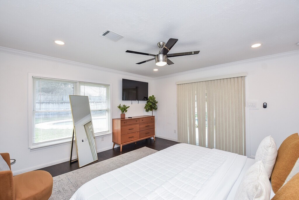 Welcome home to 4125 Lymbar Dr in highly desired Willow Meadows! Zoned to Pershing MS & Bellaire HS! Quick drive to Rice University,The Med Center,Hermann Park,The Galleria,local coffee shops,eateries,hike & bike trails! This 1 story,3 bed 3 bath is an entertainers dream w/a freshly plastered pool in 2023,outdoor kitchen & newly built pergola. Remodeled kitchen w/42' white cabinets,under mount lighting,updated black fixtures,quartz countertops,glass subway tile backsplash,Lazy Susan,pull out drawers,& custom cabinetry. Built in desk area in the kitchen adds a special touch. Recently installed double pane windows. Gorgeous crown molding in the formal living & dining rooms w/an arched doorway leading to & from each room. Fantastic view of the pool from the master bed w/sliding glass doors leading directly out to the patio. Garage floor newly finished. Roof (2020),AC (2018) NEVER FLOODED. Fully furnished. Available for short and long term rental. MLS# 85128799