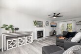 Welcome to this stunning three-bedroom, two-and-a-half-bath home that effortlessly combines comfort and style. The monthly rental amount includes a two-car garage and a well-maintained yard, making this residence the perfect balance of convenience and serenity. Inside, the home includes updated appliances and a bright kitchen with white cabinets and marble countertops, as well as stylish plank flooring throughout. The living room boasts elegant French doors leading to a patio and a generously-sized deck, perfect for outdoor gatherings in the expansive yard. In addition, stylish hardware such as light fixtures and faucets adds a touch of sophistication to this beautiful home. Don't miss out on the chance to call this inviting and well-appointed property your new home, where convenience, comfort, and style come together seamlessly. **Please note that this home does not come with any furnishings**