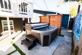 Feel at home in this fully furnished 1-bedroom apartment, centrally located near UCSD Medical Center, Mercy, and close to USD, SDSU, and Balboa Park. Situated in the vibrant Hillcrest/University Heights neighborhood, this contemporary apartment offers a fresh, clean, light, and airy atmosphere. Located on the top floor of a two-story building, access is via stairs. The master bedroom features a queen-size bed, two side tables, a large wooden dresser, and a mirrored closet, with an east-facing window for gentle morning light. An additional queen bed is available in the foldout couch in the living room. The modern kitchen boasts white marble countertops, European wood cabinetry, and professional series kitchen appliances, including a dishwasher, garbage disposal, Keurig coffee machine, and Cuisinart toaster oven, providing everything needed to make a gourmet meal. The bathroom is clean and fully stocked with fluffy towels, and the unit includes a state-of-the-art washer and dryer. Ask about our add-ons, including early check-in, late check-out, Pack 'n Play Crib, beach wagon, surf and boogie boards, and car rentals. Pets are welcome with a $100 fee per pet per stay. Undeclared pets, including ESAs, will incur a $200 fee per pet. Explore the neighborhood by bike or on foot, with Trader Joe's and Ralph's just a short walk away. The apartment is conveniently located 0.3 miles from The Hub Hillcrest Market, 1 mile from Balboa Park, and 0.8 miles from the restaurants on Park Boulevard. San Diego's beautiful beaches are just 7 miles away, offering endless opportunities for relaxation and adventure. Check-in is available anytime after 4 pm with a provided code for the front door. The property features 24/7 monitored security with exterior cameras and a device that monitors the environment inside the property to ensure a pleasant stay. Quiet hours are from 10 p.m. to 9 a.m., and the hot tub shuts off at 10 p.m. No parties are allowed, and undeclared guests will be charged $65 per person per night. Smoking indoors will incur a $200 charge, and tampering with Wi-Fi, outdoor security cameras, or locks will result in fees. The shared backyard and front yard are shared with the downstairs unit and side house, and guests are asked to be respectful of noise levels and neighbors when using the shared jacuzzi and fire pit. The apartment is equipped with blazing-fast Wi-Fi for remote productivity, and both TVs come with YouTube, Netflix, Amazon Prime, and HBO for entertainment. [SI]