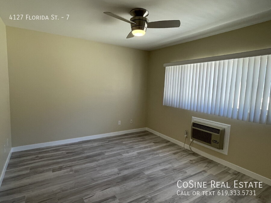 1BR/1BA Open living room leads into a nice dining space, with a kitchen that offers plenty of storage and a bartop for easy dining. The large bedroom has AC and mirrored closet doors. There's an in-unit stackable washer and dryer, plus one assigned parking spot. The building is gated, quiet, and well-kept. Located in a central neighborhood close to Balboa Park, Downtown, and popular areas like South Park, Mission Valley, and Bankers Hill. LEASE DETAILS - Available January 5, 2026 - Rent: $2,095 - Deposit: $2,095 - Water & Trash included - Military Discounts - Small Pet Ok. Questions? Call/Text Professionally Managed by CoSine Real Estate DRE #01976619