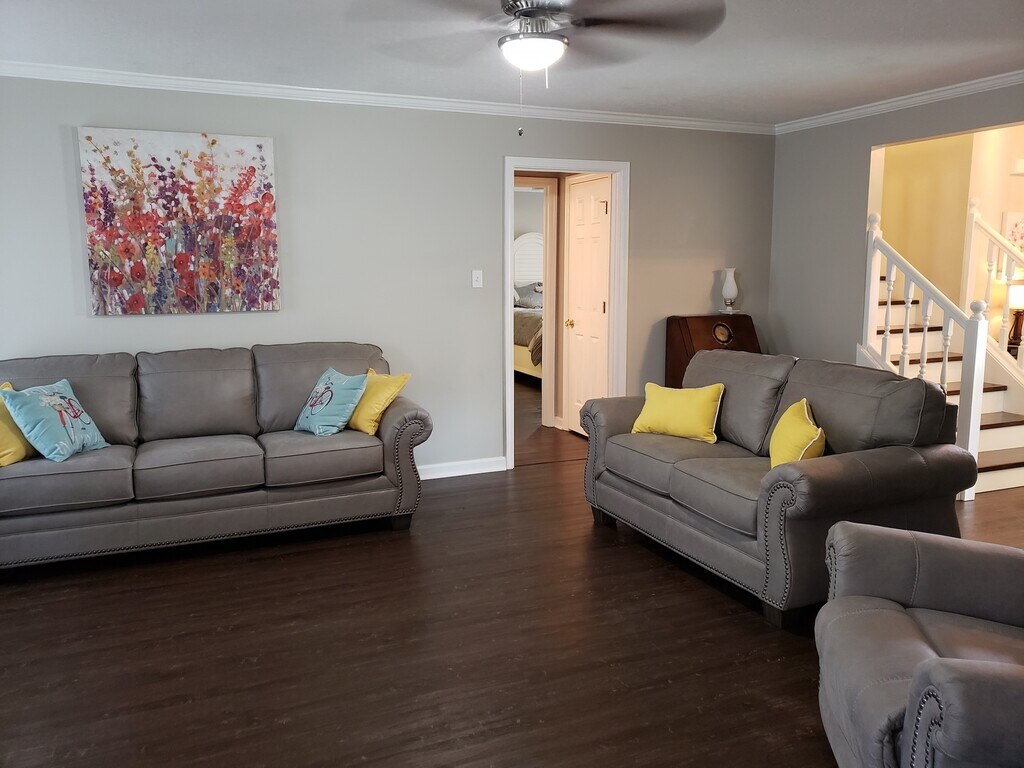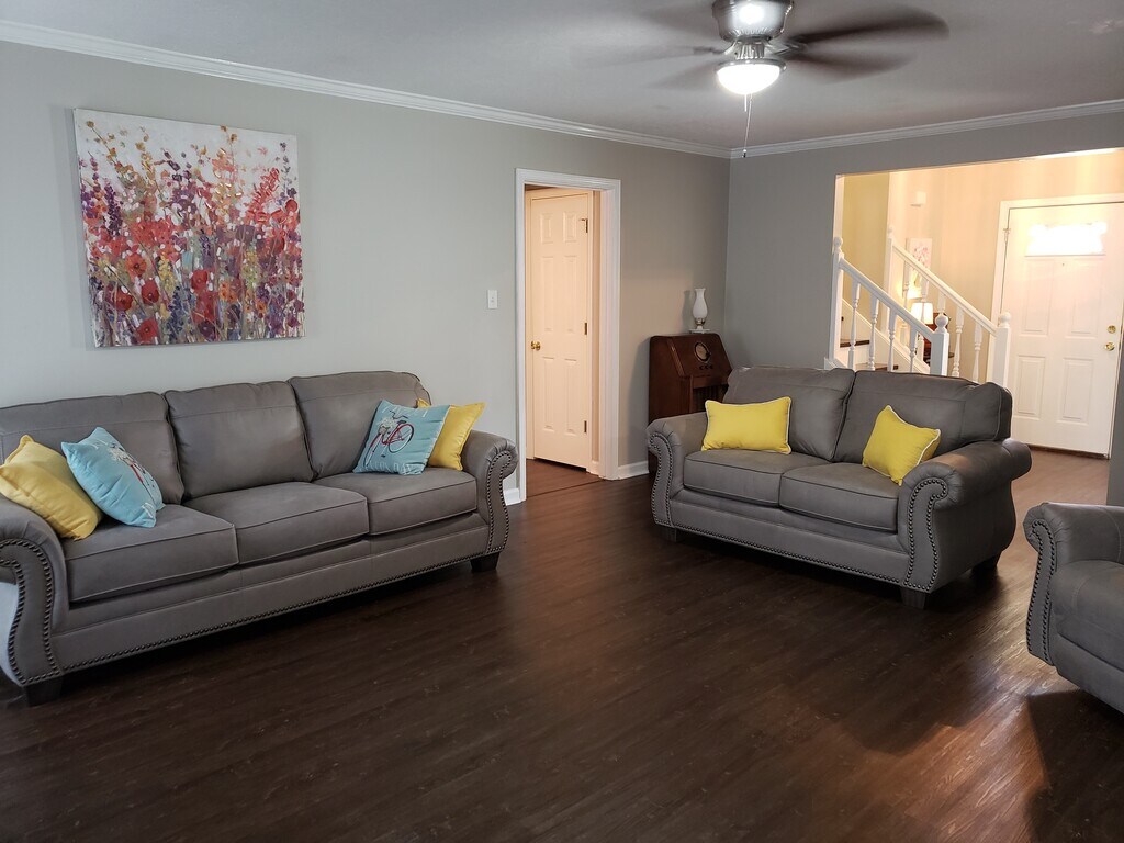 Beautiful, renovated 2 story home situated in the friendly, quite Dawnhill neighborhood in Bartlett, TN. Property details • 3 bedrooms ( Master (13x16) with ceiling fan spacious walk-in closet, Bedroom 2 (16x13) with large walk-in closet, Bedroom 3 (11x13) with walk-in closet ) • 2 ½ bathrooms • Den (20x15) with ceiling fan • Large kitchen with eat-in area (20x11) • Dining room (12X11) • Laundry room with appliances • Large 2-bay garage with extra work space. RENOVATIONS • New energy efficient windows • New energy efficient HVAC unit • New Luxury Vinyl Plank (LVP) flooring • New hardwood stairs • Sherman Williams – Agreeable Grey paint • Newly re-insulated BONUSES • Backyard shed/work area AMENITIES • Stove • Refrigerator • Dishwasher • Washer and dryer RENTAL DETAILS • $2,000 mo • Security deposit • Cleaning fee • No Smoking or pets • Application fee. For application and rental information contact Kurt Guttensohn or Alex Eilers-Guttensohn