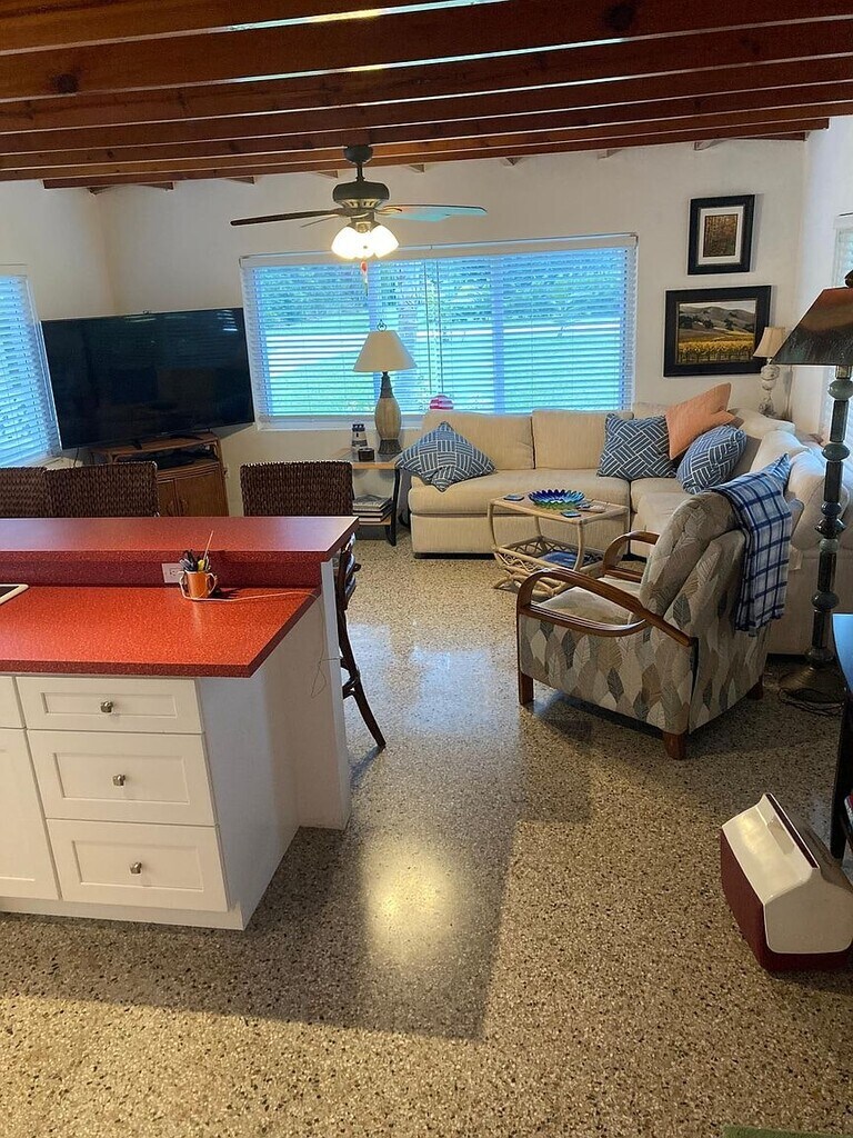 Updated 1950's Modern architecture on double lot and close to water and boating and restaurants. Single level with carport and two driveways for parking your boat,etc. New master bath w walk in glass encased shower. Charming pine and beamed ceilings, lots of windows and terrazzo floors. Walk to several waterfront restaurants. Boat launch's nearby. Relax on porch swing or private rear porch. Partially furnished and only 2 blocks off A1A.