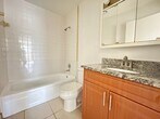 Charming and updated Large 2-bedroom and 2 full baths, located in a quiet, single-story 4-plex. The modern kitchen features newer, appliances, including a glass-top stove, microwave. Full size Washer and Dryer. Large walk-in closet in Main Bedroom. Easy-to-clean ceramic tile floors throughout, plus central AC for year-round comfort. Step outside to your private, fenced-in backyard with a bonus side-yard for extra outdoor space. Quick approval process for a smooth move-in.