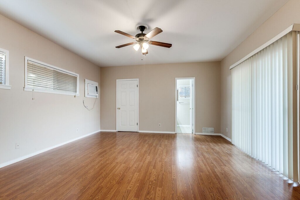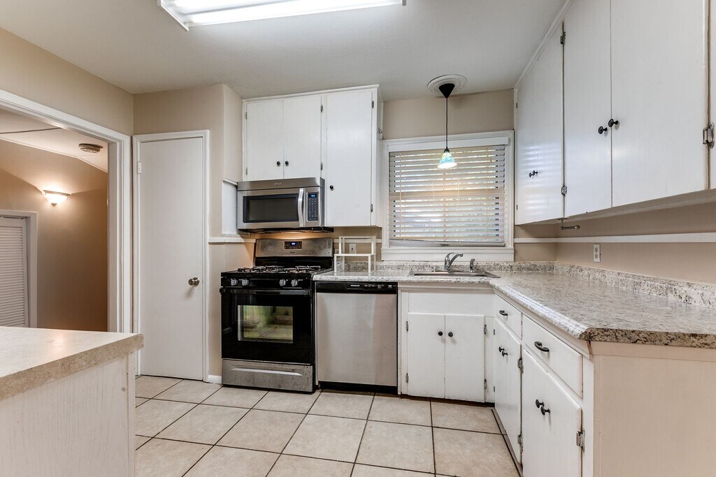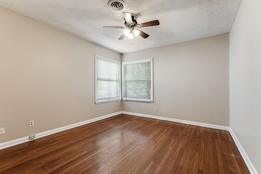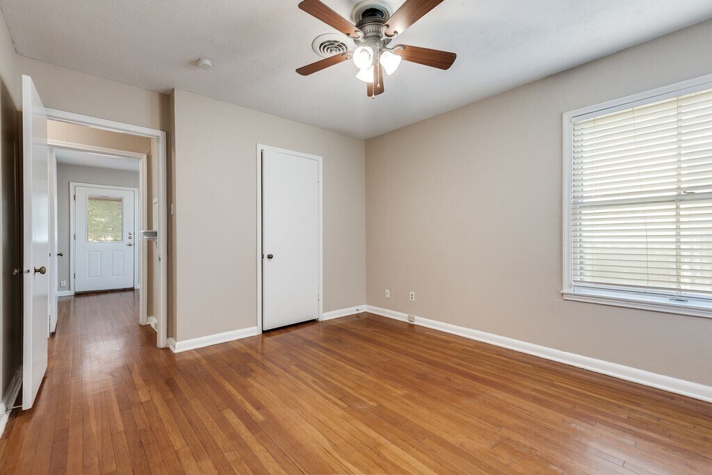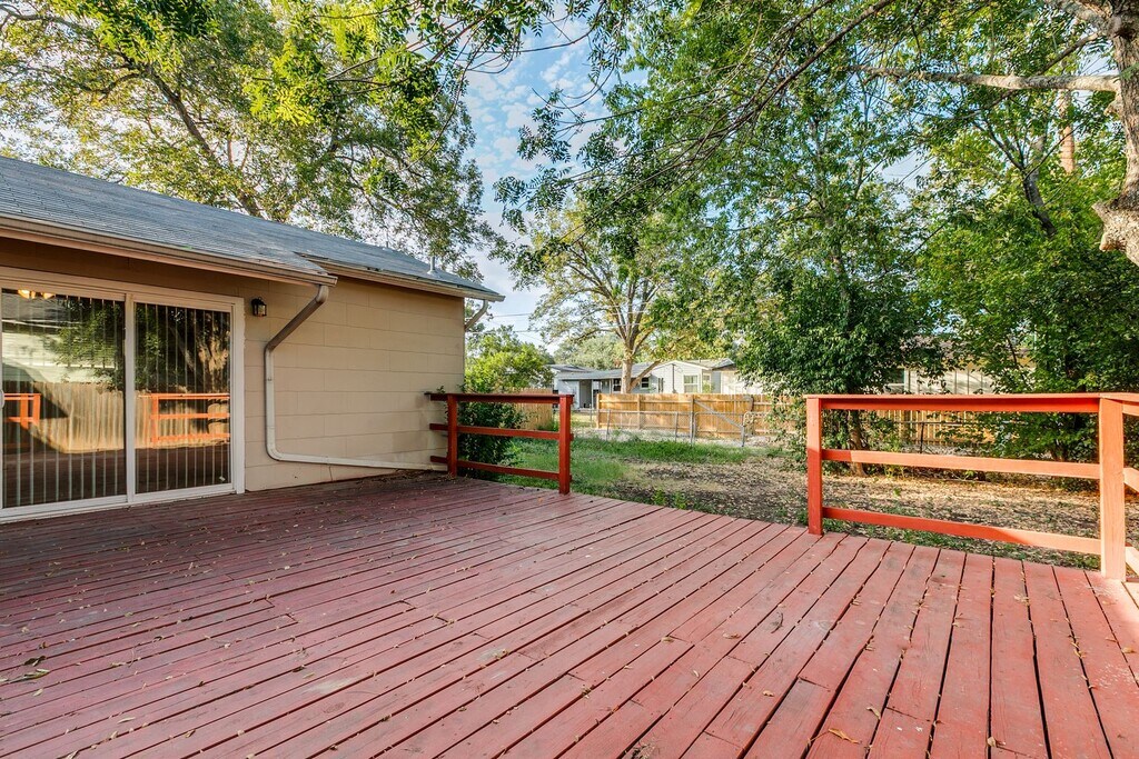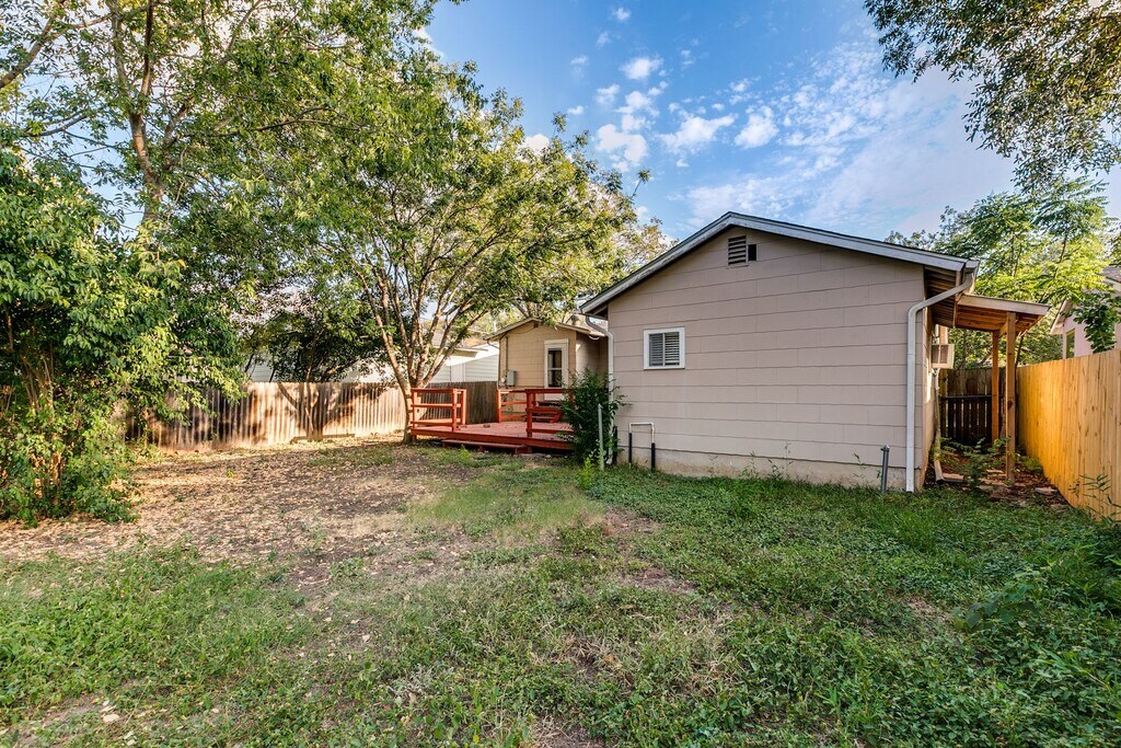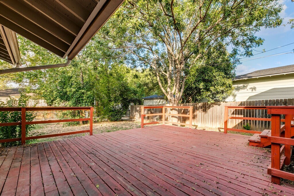 Welcome to this charming single-story, three-bedroom home located in the desirable Terrell Heights and zoned to the highly regarded Alamo Heights ISD. Rich hardwood flooring runs throughout the living areas and bedrooms, creating a warm and inviting atmosphere. The spacious living room features built-in shelving and cabinetry, offering both functionality and character. The kitchen is efficiently designed and equipped with gas cooking and stainless steel appliances, including a refrigerator, microwave, stove/range, and dishwasher. Neutral paint colors and window coverings are found throughout the home, and each bedroom includes a ceiling fan with a light fixture for added comfort. The primary bedroom offers a full ensuite bathroom with a stand-up shower and provides direct exterior access, opening to a large deck that overlooks the fenced backyard—ideal for relaxing or entertaining. Additional features include a one-car carport. Pets are considered on a case-by-case basis.