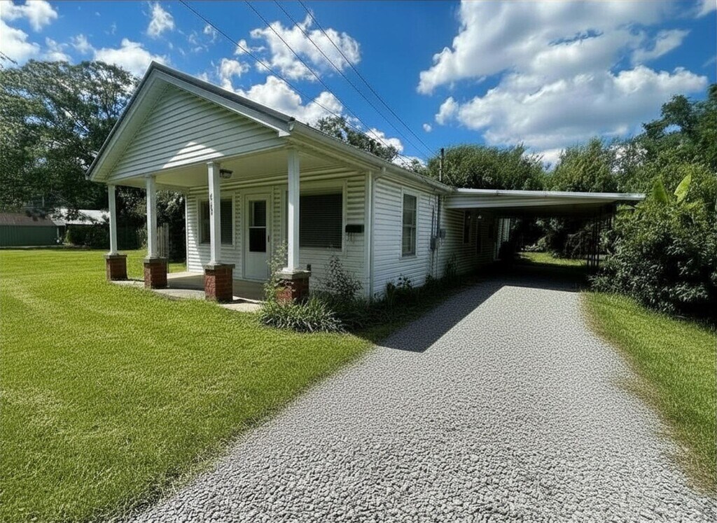 Enchanting 2 bedroom home with attached carport, covered front porch, back climate controlled out building, and spacious kitchen!! Call us for details!