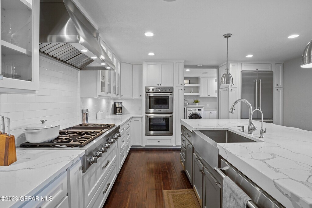 The perfect home for your stay in El Paso. This home comes fully furnished with loads of style and high-end finishes. What will you love more: the backyard views with patio seating and lighting,the front courtyard with firepit and outdoor dining,The kitchen with expansive countertops,and professional appliances? Or will it be the double-sided fireplace,the vaulted ceilings or the deep soaking tub in the primary suite? The home has lovely views,a 2-car garage,fountains,and wood floors. Rent is $3500 2-year lease preferred. Must have good credit and rental history. Application fee is $35 per applicant over 18.