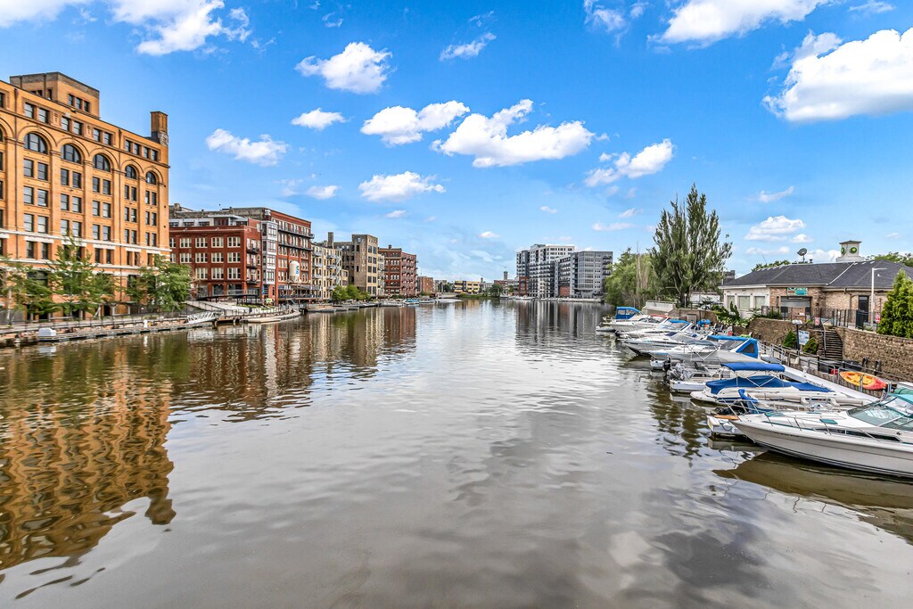 2BD/1BA,authentic loft condo at Warehouse Lofts. Located just over the bridge from Third Ward! 3rd flr condo w/east views. Over 1200sqft,open concept,split flr plan featuring cream city brick,solid beams & columns,high ceilings,exposed ductwork,oak HWFs throughout,Nest thermostat & in-unit W/D. BDs have WICs. Master has lrg windows & dual entry BA. KIT w/GE Profile & Frigidaire Gallery apps,maple cabs & updated quartz c-tops & wrap-around island w/overhang. Community rm & HUGE fitness rm. Steps to The Hop,Intermodal Station,Public Market,riverwalk,lakefront,coffee shops,restaurants,breweries & more! EZ access to hwy. 15 min to airport. 1 surface parking space. Additional parking can be rented nearby. No pets. No smoking. AVAILABLE NOW (12mo term,700+ credit & income 3xrent)