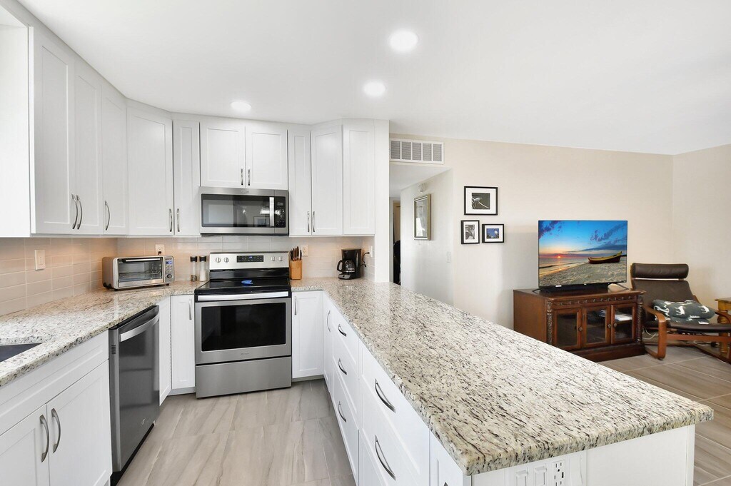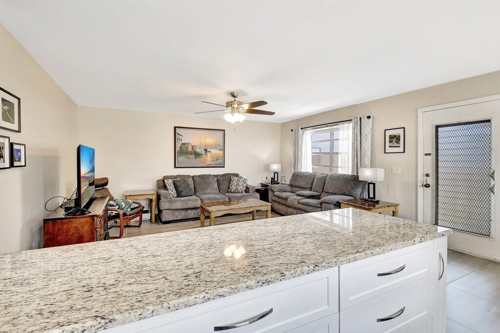 Try it before you buy it!Unit is also For Sale!Turnkey 2 bed, 2 bath second-floor condo in sought-after Kings Point! Enjoy views of the Pavilion from your private porch, just steps from the executive golf course, tennis courts & guest parking. Located near the Jog Rd entrance and near the end of the building for added privacy. Features include an open, updated kitchen with soft-close cabinets, large square tile throughout, updated bathrooms, and comes fully furnished. Move right in with your clothes and start enjoying the Kings Point lifestyle!