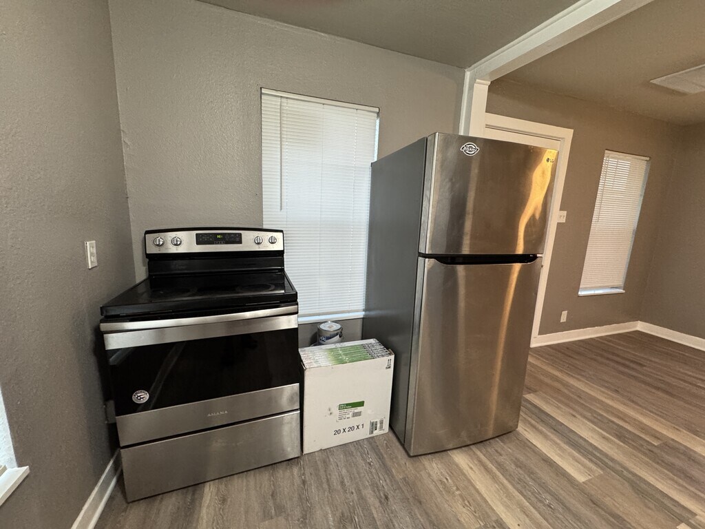 Cute remodeled, 1 bedroom 1 bath cozy home. Furnished with stove and refrigerator. Central Heat & Air. Vinyl flooring, large partially fenced yard. Unit has a new roof, fresh paint and recently updated. Cute! Cute! Cute! One bedroom one bath refurbished home on an oversized lot. New flooring, paint, fixtures, appliances. Central AC and Heat, new roof. new windows. Close to school, shopping, bus lines. This is a must see. Call today to schedule your appointment.