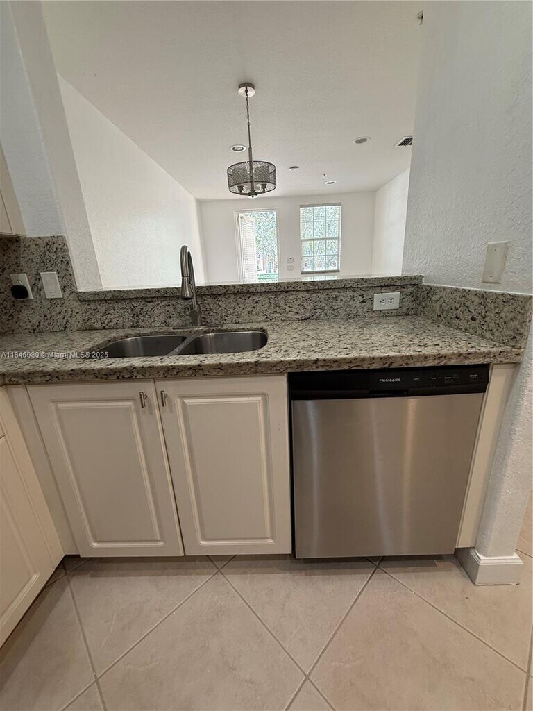 Beautiful unit on ground floor located in Cobblestone it's luxury community in Pembroke Pines. This unit is immaculate and spacious 2 bedrooms 2 baths. Large master suite with coffered ceiling, master bath w/double skink. Nice kitchen with granite counter tops and lots of storage, washer, and dryer, ceramic tile, walking closets, high ceilings, Impact windows and doors. Plenty closet space. Freshly painted wall. Community with many amenities like Gym, Pool, playgrounds and party facilities.