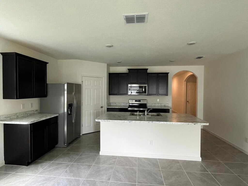 Almost new 4 Bedroom, 2 bath, 2 car garage. Open floor plan with large kitchen island and walk in pantry. Primary bedroom easily fits king size furniture and more, with an oversized walk-in closet and large linen closet. Tile everywhere except the bedrooms. Kitchen boasts 36'' cabinets, all stainless steel appliances including refrigerator. Blinds on all windows, Garage door opener, and trussed covered lanai. No HOA rules or fees.