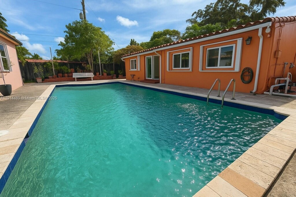Discover the charm of Miami Springs, one of our most treasured neighborhoods — a peaceful, tree-lined community known for its small-town warmth and exceptional convenience. This highly desirable community blends historic character with a relaxed suburban feel, offering the perfect backdrop for this beautiful pool home located blocks from the Golf and Country Club. Features include an updated modern kitchen and bathroom, a second living room near the pool, a gated drive for additional parking or entertaining, hurricane shutters, two refrigerators, and a circular drive in front adds to the ample parking. Nearby are many restaurants, aquatic and community centers, a park and bicycle trails. Just minutes from Miami International Airport, top schools and major highways. Virtual staged.