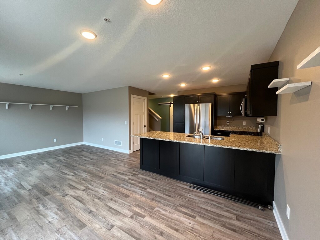 Introducing a remarkable two-level townhome featuring 4 bedrooms and 3 bathrooms, two-stall garage, and stunning nature views nestled in the vibrant heart of St Francis. Step in to an inviting open concept living space that seamlessly blends the living, dining, and kitchen areas. The kitchen boasts 2020 stainless steel appliances, a gas stove ideal for culinary enthusiasts, sleek granite countertops, luxurious vinyl flooring through out and custom cabinets. The open floor plan facilitates effortless entertaining, leading out to a backyard patio/BBQ area. Revel in the abundance of natural light pouring through large windows, complemented by recessed lighting and top quality finishes. Retreat to the master bedroom complete with a private 3/4 bath and walk in closets, while the remaining 3 bedrooms, also with walk-in closets, occupy the same level along with laundry room. This residence offers the perfect blend of modern comfort and natural beauty. With easy access to Hwy 47, enjoy close proximity to grocery stores, gas stations, restaurants, and schools. Available for occupancy early April 2026. -Household income must be 3 times rent. 12 month lease. -Credit Score 650+. No prior evictions. -Adults must complete renter application (application fee non-refundable) and pass a background check. -Pets 1 small dog (deposit refundable and monthly fee non refundable). -First months rent and deposit due at signing. -Basic Trash/Recycling, Basic Snow Removal included. Tenant responsible for rest of utilities. Must follow -HOA regulations.
