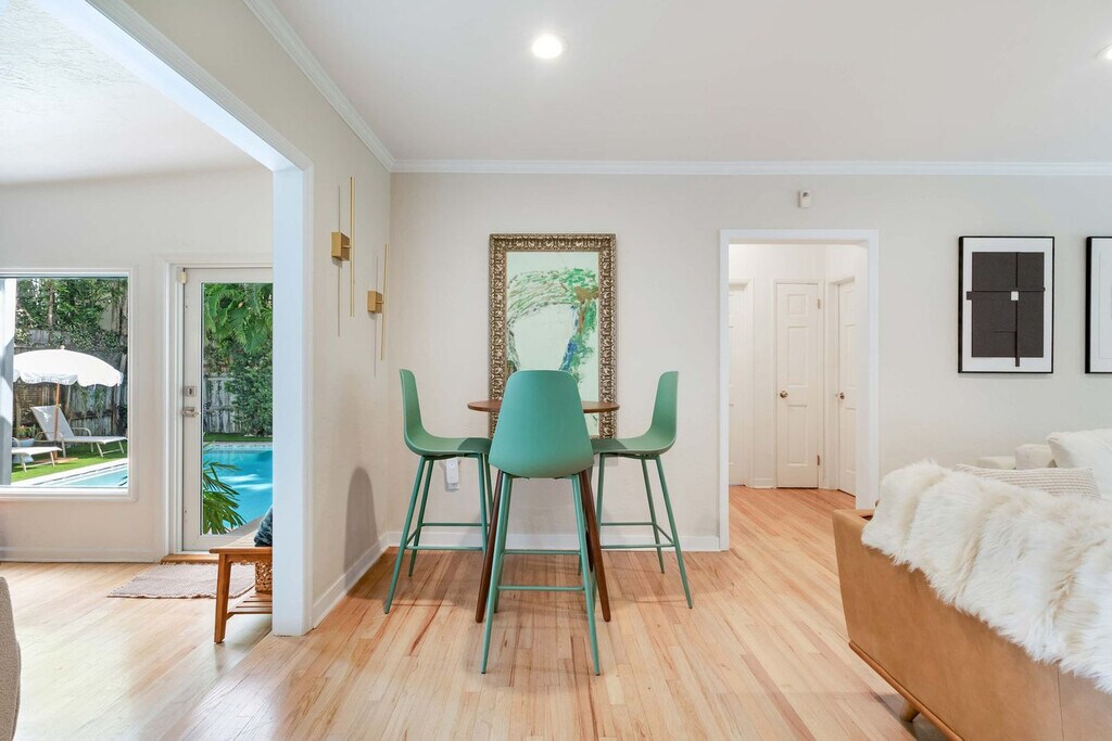 Escape to this stylish Miami home in the heart of Coconut Grove and feel at home! This beautifully designed property boasts a private non-heated pool. This home features a modern, artistic style throughout, with a fully stocked kitchen and multiple seating areas, including a built-in BBQ grill for outdoor dining. Amenities include Wi-Fi, Smart TVs, an ironing set, and laundry facilities. Parking is available in the driveway for up to 2 cars. Concierge services are available upon request to arrange boat rentals, a chef, or a massage. Housekeeping services are also available during your stay upon request and at your cost. Located in a tranquil neighborhood, you're just a short drive from the vibrant CocoWalk, local cafes, and the stunning Biscayne Bay. Explore nearby attractions like the Vizcaya Museum and Gardens or enjoy water activities. The "Grove" packs in charm, history, and culture into a relatively small area along Biscayne Bay, mixed in with bohemian bungalows, independent book shops, and locally owned cafes. Check-in is after 4 PM and check-out is before 11 AM. Early/late options may be available upon inquiry. Strict no-smoking policy and low noise levels are requested post 10 PM. Parties and large gatherings are prohibited. Book for the exact number of guests; no additional guests without approval. Subletting is not permitted. Quiet hours are between 10 PM and 8 AM. The number of guests cannot exceed those specified at booking. No additional visitors or overnight guests without prior approval. Violations incur a $50 fee per person, and your stay may be terminated without refund. All guests must be 21 years or older unless accompanied by a parent or pre-approved. No underage drinking, drugs, marijuana (medical or recreational), or vaping are permitted. Any smoke smell will incur a $100 cleaning fee. Respect the residential area and noise ordinance between 10 PM and 8 AM. Violations may result in police visits and immediate eviction. [SI]