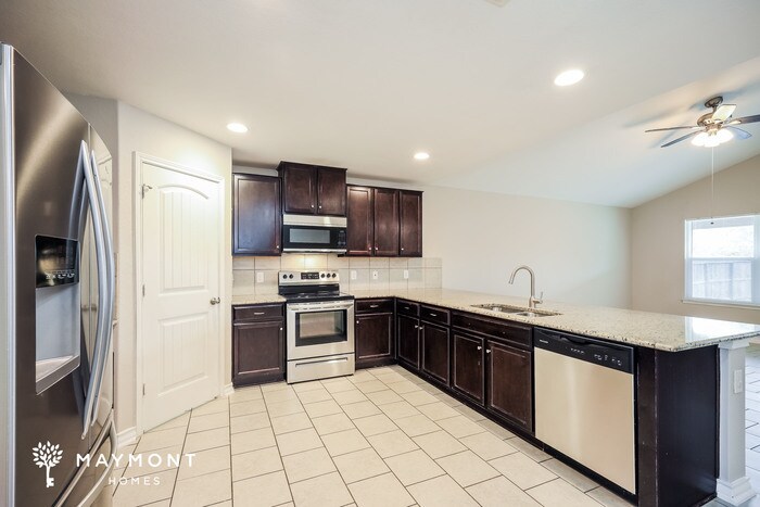 MOVE-IN READY This 4-bedroom, 2.5-bathroom home offers 2,322 square feet of well-planned living space in San Antonio, TX. A brick-and-siding exterior sets the tone as you arrive, complemented by a two-car garage and a welcoming front entry. Inside, a mix of tile and LVP flooring creates a clean, cohesive flow throughout the main living areas and bedrooms. The first floor is arranged for everyday ease, featuring a spacious living area that connects seamlessly to the kitchen and dining space. The kitchen is equipped with stainless steel appliances, granite countertops, ample cabinet storage, and a center island with room for seating. A pantry adds extra storage, while the open sightlines keep the layout feeling connected and functional. Just off the main living area, a covered patio extends the usable space outdoors and overlooks the backyard. Upstairs, all four bedrooms are thoughtfully placed for privacy, along with a flexible bonus area that can serve as a secondary living space, workspace, or reading retreat. The primary bathroom includes a double-sink vanity, offering plenty of counter space, while the additional bathrooms continue the home’s practical design with tile flooring and straightforward layouts. Located in northwest San Antonio, this home provides convenient access to nearby shopping, dining, and major roadways that connect to the greater metro area. With its generous layout, durable finishes, and inviting indoor-outdoor flow, this home offers a balanced setting for daily life. Apply Now! *Maymont Homes provides residents with convenient solutions, including simplified utility billing and flexible rent payment options. Contact us for more details. This information is deemed reliable, but not guaranteed. All measurements are approximate. Actual product and home specifications may vary in dimension or detail. Images are for representational purposes only. Some programs and services may not be available in all market areas. Prices and availability are subject to change without notice. Advertised rent prices do not include the required application fee, the partially refundable reservation fee (due upon application approval), or the mandatory monthly utility management fee (in select market areas.) Residents must maintain renters insurance as specified in their lease. If third-party renters insurance is not provided, residents will be automatically enrolled in our Master Insurance Policy for a fee. Select homes may be located in communities that require a monthly fee for community-specific amenities or services. For complete details, please contact a company leasing representative. Equal Housing Opportunity. This property allows self guided viewing without an appointment. Contact for details.
