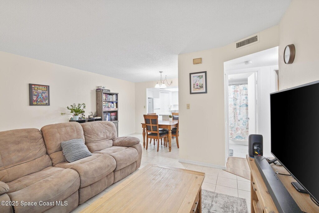 This well-maintained first-floor condo in the gated Bella Vita community features 2 bedrooms and 2 full bathrooms. The unit includes impact windows,a 3.5-year-old HVAC system,and water heater,plus a 5x10 storage unit. All appliances are included,including a compact stackable washer and dryer. Residents enjoy access to the community pool,a reserved parking space,and additional open parking. Ideally located 13 minutes from Kennedy Space Center,13 minutes from Port Canaveral,15 minutes to the beaches,with easy access to SR528 for a quick drive to Orlando and 40 minutes to Orlando International Airport.