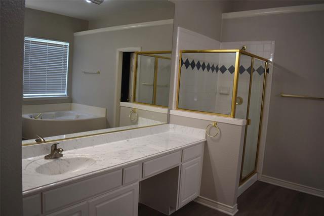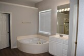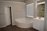 New Carpet, wood floors and paint. Large island kitchen with double oven, large primary suite downstairs with garden tub & separate shower, closet built ins. community pool, close to everything!