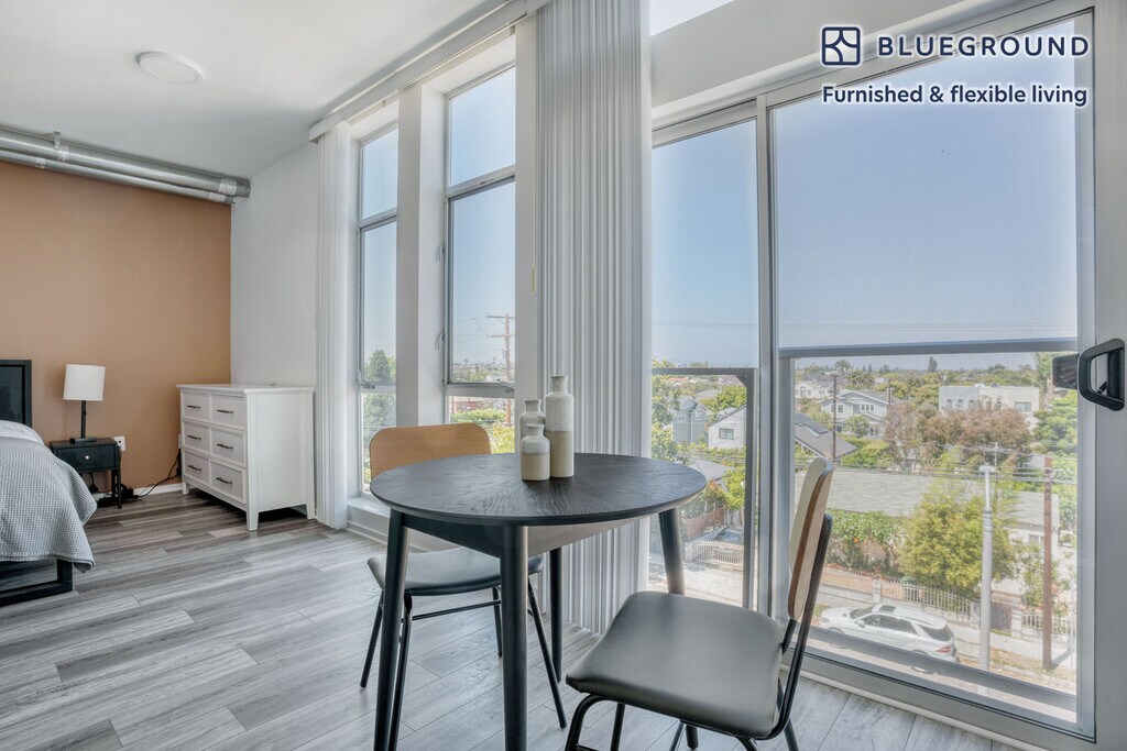 Show up and start living from day one in Los Angeles with this beautiful studio Blueground apartment. You’ll love coming home to this thoughtfully furnished, beautifully designed, and fully equipped Del Rey home. (ID #LAX1081) The advertised rate of $2,870/month is the lowest available price, based on a 1 month(s) and 27 day(s) stay with a move-in date of November 22, 2025. If you’re looking for a 1-year stay, the rate is $3,250/month. Rates vary depending on the duration of stay, season, and other parameters. For exact pricing and additional pricing components, please visit our website and enter your desired move-in and move-out dates. The rate is applicable when billed upfront; it can be higher if billed in multiple payments. Brokers are welcome to reach out. Were you looking for an unfurnished lease? Try Blueground instead and upgrade from unfurnished to furnished living: - Furnished at rates comparable to unfurnished - No setup or furniture costs - save thousands - Move-in ready - save time, just bring your suitcase Designed with you in mind Gorgeous furniture, fully equipped kitchen, smart TV, and a premium wireless speaker are just a few of the amenities you’ll find inside this studio apartment. Ideally located in Los Angeles, you’ll find a lot to love outside as well. When you’re ready to relax, you’ll be happy to discover every Blueground bedroom comes with superior quality mattresses, luxury linens, and cozy towels. We handle everything so you can simply show up and start living. This apartment also offers in-apartment laundry. Sleeping arrangements King Bed, 70.8in/180cm Amenities Building amenities unique to this studio apartment include an on-site: - BBQ Area - Dryer - Elevator - Swimming pool - Washing machine - Parking - Pets allowed Arrival and ongoing support The entire apartment is yours to enjoy! Throughout your stay, you’ll have access to our Client Experience team through the Blueground App. You can schedule additional cleanings, submit maintenance requests, and view our neighborhood recommendations with just a few taps. We’ll share all details upon confirmation of your stay. Other things to note Building amenities may have an extra cost. This Blueground apartment has flexible lease options, allowing you to book it for one month, a year, or more. Pets are welcome, though weight limits and breed restrictions apply and may incur fees. Parking is offered based on availability and is subject to a fee. We take great pride in ensuring every photo displayed is shot in our own units with our actual furnishings. That said, we regularly refresh our decor and furniture arrangement, which may differ from what’s pictured. Also note - This apartment faces the street - There is typically ample unrestricted street parking around this building [PL]