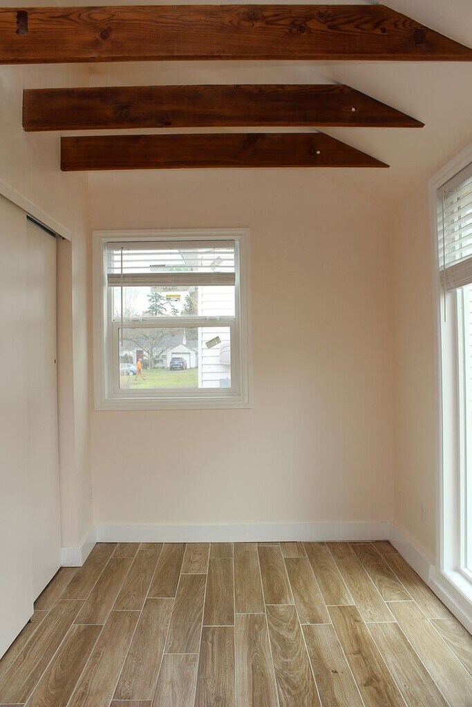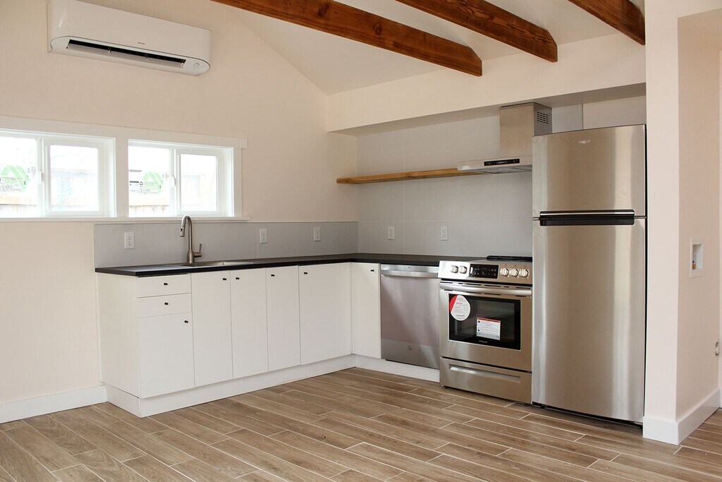 Newer construction studio ADU packs a lot of punch for a small space! Features include: • Open Great Room • Exposed wooden beams • Lots of windows = light-flooded spaces • Hi-end materials and finishes • Gorgeous open Kitchen with black solid-surface counters and stainless appliances • Bathroom features glass step-in shower • W/D hookups for stackable model • Wood-look tile flooring – water resistant and easy to clean • Energy-efficient mini-split electric heat and AC • Deck overlooking private yard • Great Roseway neighborhood location – blocks to shopping, restaurants, coffee, and much more. • Walk Score = 74 / Bike Score = 87 *$100 surcharge for Water/Sewer/Electric --Renters Insurance Required-- * Small Pets negotiable with additional pet deposit ** Please Note: This Unit is Not ADA Compliant *** Per City of Portland law, we cannot accept applications for this property until 2:00pm on Saturday, November 15th. Any application submitted before that day and time will be considered received at 10:00pm on Saturday, November 15th as an 8 hour penalty.