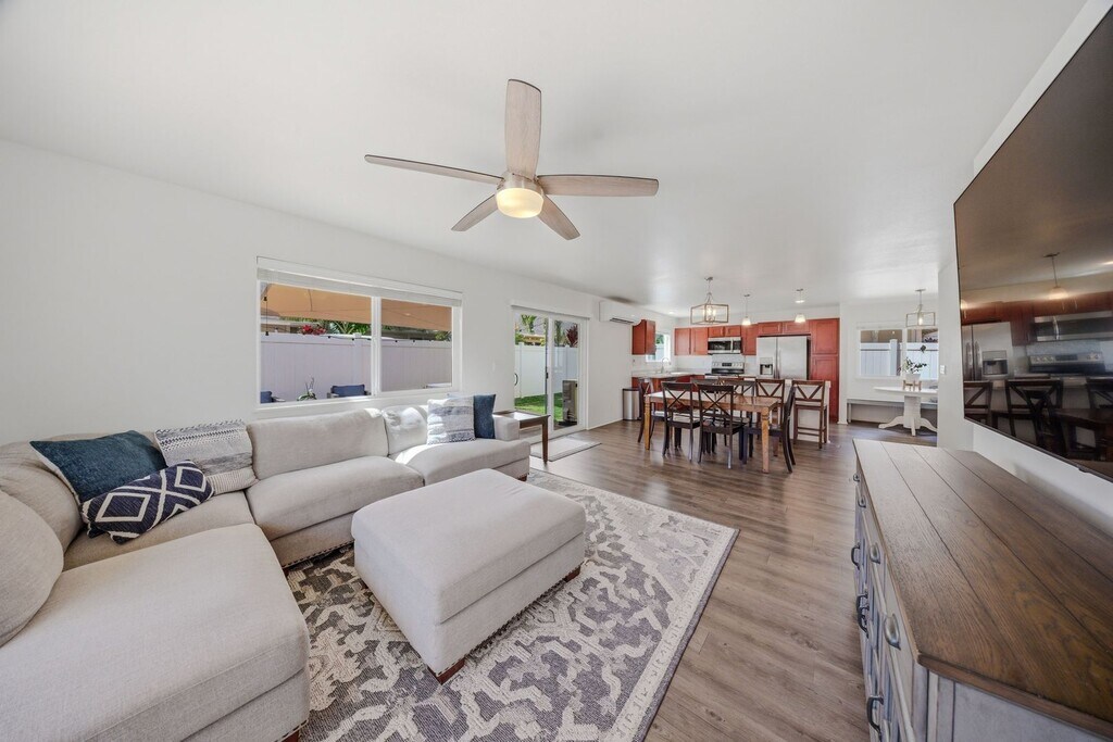 Highlights of the home: Kitchen equipped with stainless steel appliances, an eating nook, and a dining table Solar Water Heater Large Garage with washer/dryer Storage Shed Fully fenced, good size yard Outdoor patio area with a fire pit and outdoor furniture, ready to entertain Primary suite with ample closet space and an ensuite bathroom Each bedroom has Air conditioning End of a cul de sac Located in a convenient central area of Lihu?e, this property offers the perfect blend of comfort and accessibility. The neighborhood is well-established and known for its convenient proximity to many of Kaua?i’s everyday essentials. Residents enjoy being just minutes from the airport, Wilcox Medical Center, shopping centers, restaurants, and beautiful nearby beaches. Available July 15, 2026. 1-month deposit & renter's insurance required. No pets, no smoking Tenant is responsible for electric, water, internet/cable. To schedule a viewing please fill out an application in the Rentals section at www.Kauai- Rent is $5500. Leah Ragsac REALTOR® Broker RB-24509 Kauai Realty, Inc. Office: | Cell: