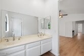 Beautifully updated 3 bedroom, 2.5 bath home in the popular Deer Springs community in Calabasas. Wonderful natural light abounds with high vaulted ceilings, newer wide plank natural wood-like floors throughout the home, recessed lights, dual-sided fireplace in living and family rooms. Kitchen has garden window and includes gas range, microwave, dishwasher, and refrigerator. Upstairs large primary suite has sitting area, private bath with dual vanities and enormous shower with new tile and frameless door. Very private yard with open patio and grassy area. Newer air conditioning system. Prime location just a short distance to Malibu beaches, hiking trails, excellent Las Virgenes school district, near the Commons with fun restaurants and shopping.