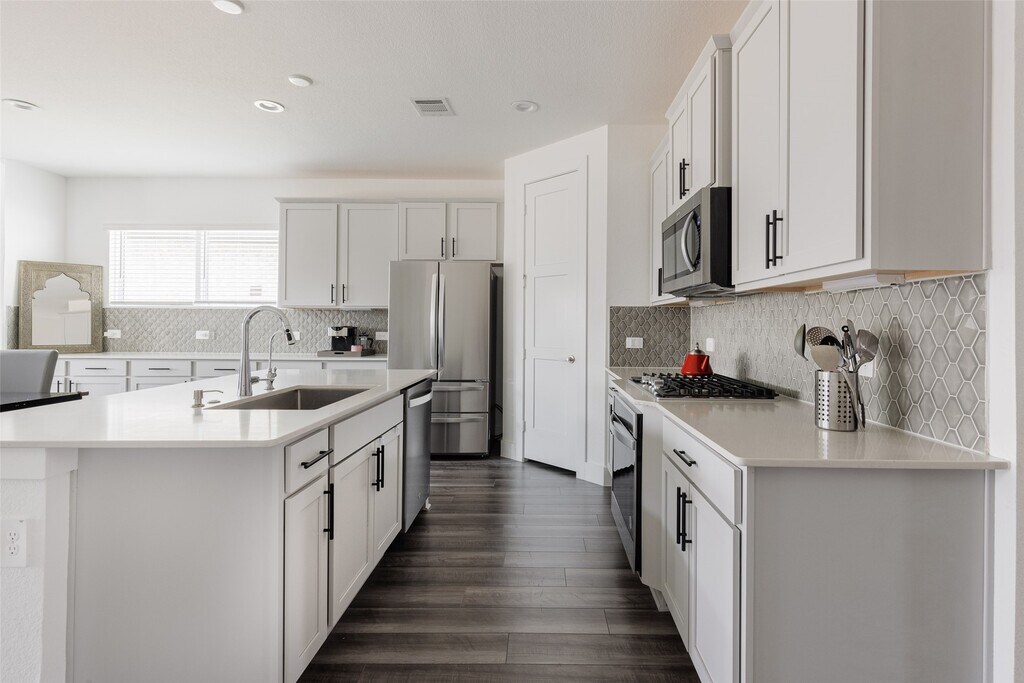 This stunning 5-bed,3-bath home is a modern retreat designed for style,comfort,and ease. Step into an open-concept living space featuring sleek vinyl plank flooring,recessed lighting,and contemporary finishes. The chef-inspired kitchen and spacious living area create the perfect setting for gatherings. Enjoy peace of mind with energy-saving solar panels and a whole-home water filtration system. The private primary suite offers a relaxing escape,while versatile secondary bedrooms provide ideal space for guests,a home office,or a playroom. Outside,a beautifully landscaped backyard with an extended patio and upgraded drainage invites effortless outdoor living. Located within highly acclaimed schools and walking distance to the community pool,this home delivers the perfect blend of convenience,lifestyle,and modern charm. Ventana Lakes offers great amenities and a sense of community,perfect for families seeking a friendly,safe,and welcoming neighborhood. MLS# 57106420