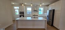 ONE OF A KIND RENTAL — Welcome to Frederick’s newest crown jewel, Chapel Alley! This end-unit, new construction, 3-story townhouse—the largest in Frederick—offers a rare opportunity for luxury living in the heart of picturesque Downtown Frederick, just steps from the city’s best dining, shopping, and entertainment. No detail was overlooked and no expense spared in crafting these one-of-a-kind homes. The striking exterior features red and black brick, composite black casement windows, custom iron railings, galvanized gutters, full divided light doors, and Hardie plank siding. Enjoy two private parking spaces, a fenced backyard, a utility balcony, and professional landscaping. Inside, the open-concept layout is anchored by a chef’s kitchen with natural quartzite stone countertops, a waterfall island, double oven, cooktop, built-in refrigerator with craft ice, and custom cabinetry with glass accents and built-ins—including a dedicated stone-topped kitchen desk. The adjacent dining and family room showcase a dramatic fireplace surround and built-in storage, with a balcony for fresh air just steps away. The primary suite features dual custom closets, a Juliette balcony, and a spa-like bath with natural black stone countertops, a black soaking tub, dual shower heads, and designer lighting. All baths feature floor-to-ceiling designer tile and premium fixtures. The top-level penthouse, with its own mini-split, includes a built-in bar, half bath, and sweeping views. This is Downtown Frederick luxury living at its finest—spacious, stylish, and truly one of a kind.