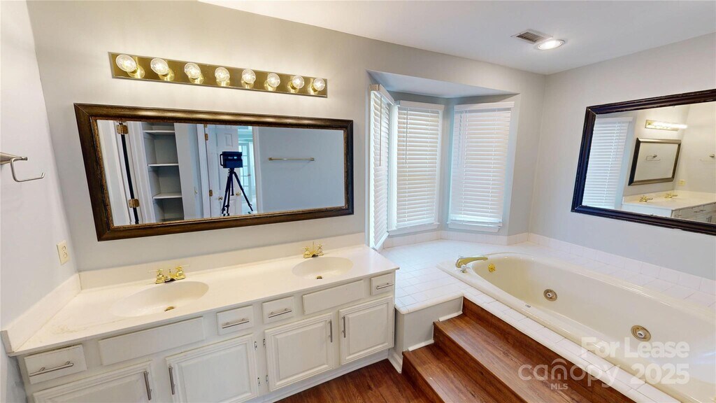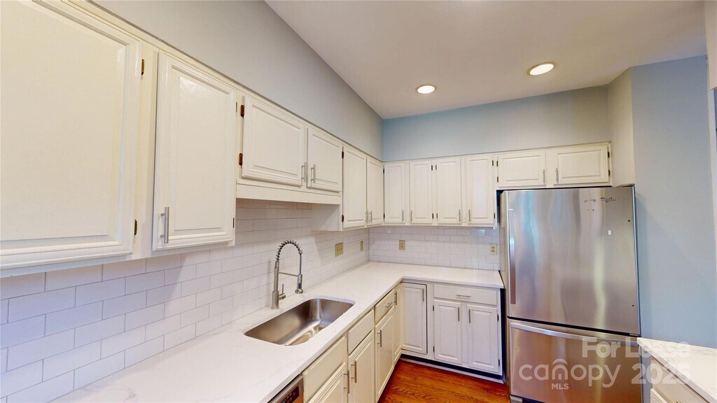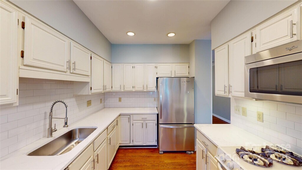 Large 2 bed,2.5 bath townhome with garage in Center City Charlotte. This Center City location within 3rd ward is a tree lined neighborhood off the main roads. Enter into main living area,open to the breakfast/dining area with half bath on main level perfect for guests. The kitchen is lit up by the large bay window & recessed lighting,with all stainless steel appliances. Check out the fenced-in patio through the double doors in the dining area. Upstairs features a HUGE master bedroom with double fans,a walk-in closet,and dual vanities. Down the hallway is the second bedroom with vaulted ceilings,the second full bath and the laundry room. 1 car garage,1 parking spot behind the garage,and street parking available. Washer/dryer included.