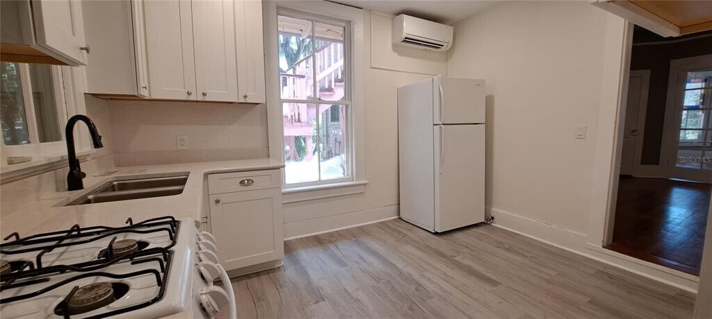 Walk to Downtown Gainesville from this gorgeous 1/1 located in the heart of the historic Duck Pond area. This charming unit features hardwood floors,luxury vinyl plank flooring and high ceilings throughout. The updated kitchen has quartz counters and the living/dining room combination is a beautiful space for relaxing after a long day. Stay comfortable year-round with the split HVAC system. Enjoy the convenience of having water,pest control and lawn service included in your rent. With a decorative non-working fireplace adding character to the space,this downstairs unit also includes a washer/dryer for added convenience. Don't miss out on this opportunity to make this Duck Pond 1/1 your new home sweet home. No pets allowed. 1st month's rent,last month's rent and security deposit are required for move-in. Initial lease term until July 30,2026 or July 30,2027 MLS# GC534664