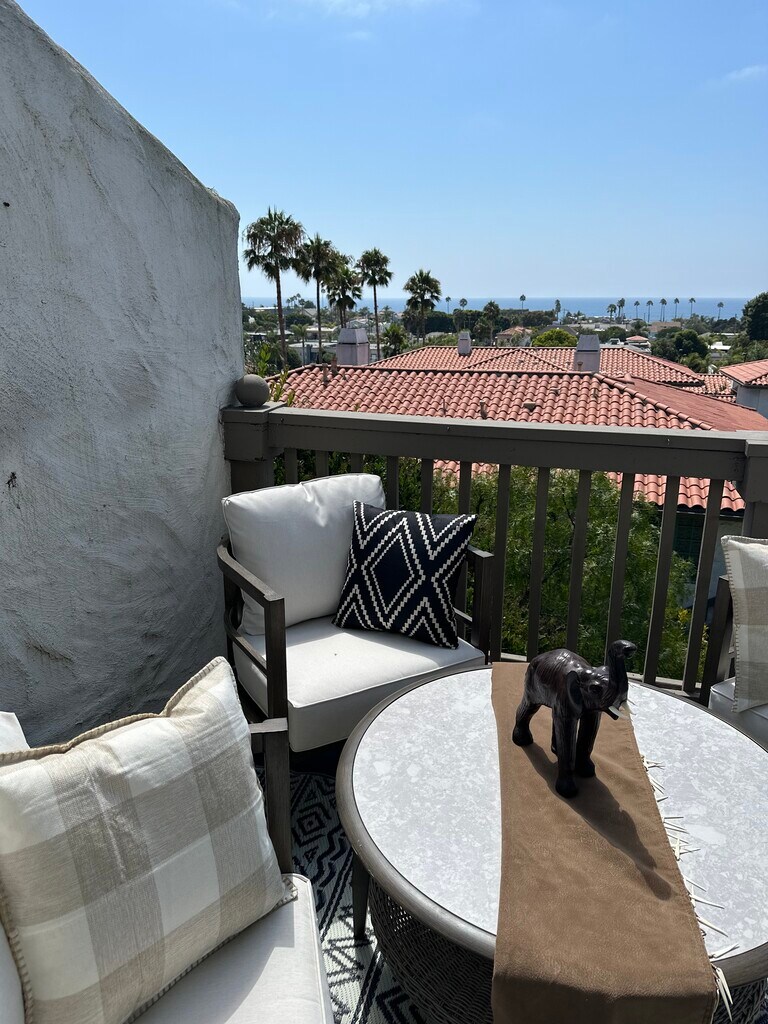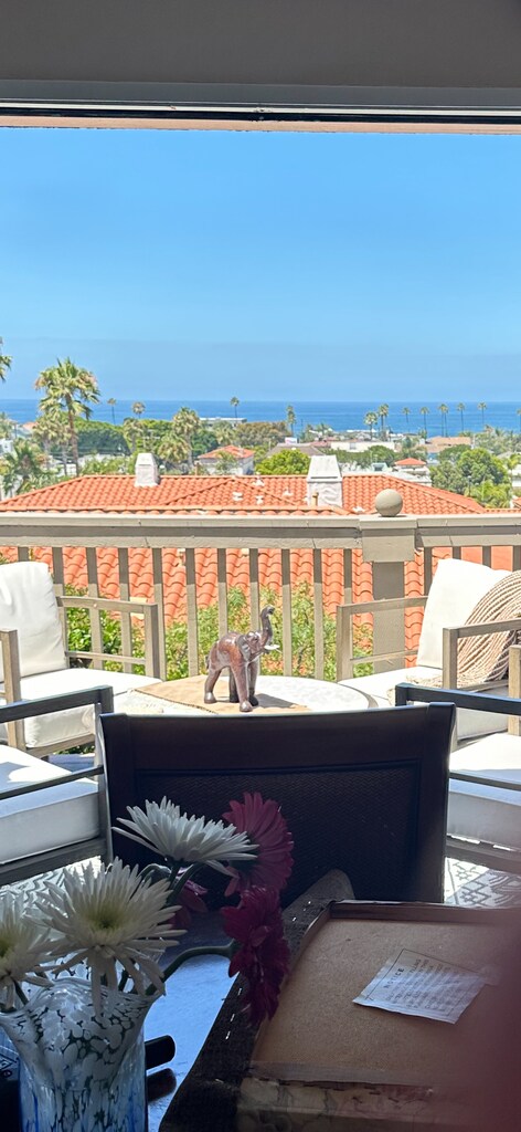 Seaside Mediterranean condo , one block from downtown Encinitas. Ocean views and decks on both levels . Close to shopping dining and transit services