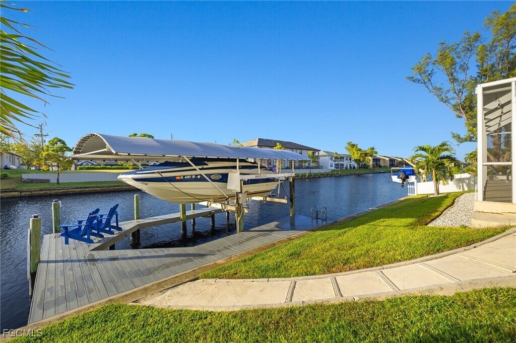 This is a VACATION RENTAL only. Owner will not consider an annual rental. Weekly rentals permitted. Live the Florida dream at Villa Nathalia! This bright,beautifully decorated home has modern nautical decor throughout,giving you a true sense of the Southwest Florida lifestyle. It is located in a popular area of Cape Coral near many restaurants and shopping centers. This Gulf access home boasts 4 bedrooms,2.5 bathrooms suitable for accommodating a party of up to 8 people. Living Room: The living room has an idyllic view of the canal and is furnished with comfortable reclining sofas and a flat-screen TV. Perfect for enjoying a movie night. Wireless internet is provided,allowing you to connect with the world with ease. There is a large glass slider with easy access to the spacious lanai. Kitchen/Dining Room: The large kitchen has an island,is fully equipped,and offers plenty of counter space for you to prepare wonderful meals for your loved ones and friends. There is also a formal dining area with seating for up to six. Master Bedroom/Bathroom: To the right is the master bedroom,which has a luxurious King-size bed,an ample walk-in closet,a private ensuite bathroom,and beautiful French doors with private access to the pool and lanai. The master bathroom has double vanity sinks,a large soaking tub,and a wheelchair accessible walk-in shower. Guest Bedrooms/Bathrooms: The two guest bedrooms located on the opposite side of the home are furnished with comfortable Queen-size beds. The other guest bedroom located off the living room has 2 Twin-size beds. An excellent area for the kids to sleep! All guest bedrooms share the guest bathroom,which has a traditional shower/tub combination. Pool/Lanai/Dock: The home has southern rear exposure providing you all day sunshine to relax by the electric heated pool. A beautiful screened-in lanai allows you to enjoy the pleasant atmosphere with plenty of seating outdoors,an outdoor shower,and a pool bath. Guests also have use of the private boat dock (boat life is not available for tenant use). If you're feeling adventurous,use the two kayaks available to take a ride down the canals. There are even four bicycles available to explore the wonderful neighborhood. You will not be disappointed!! Book your getaway today at Villa Nathalia.