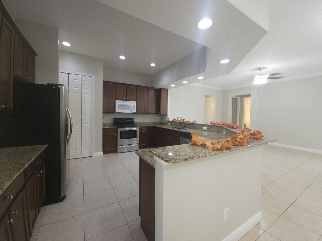 Spacious 3-B/R, 3-BA Home with Room to Roam! This beautifully updated home offers over 2,500 sq ft of comfortable living, featuring a formal d/r, large family room, & interior laundry room complete with washer, dryer, and laundry sink. The upgraded kitchen boasts 42'' cabinets, granite countertops, and a full appliance package-perfect for any home chef. Enjoy fresh interior paint and tile flooring throughout. The luxurious master suite includes dual vanities, a relaxing tub, and a sports shower with 2 shower heads. Step outside to a covered back patio with a summer kitchen--ideal for entertaining! Conveniently located just 4 miles from the Florida Turnpike, 7 miles from I-95, with top-rated schools, parks, restaurants, & medical facilities.