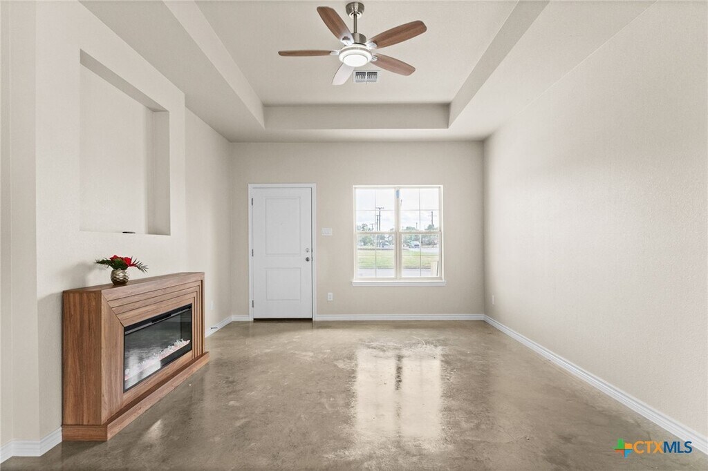Courtney Meza3-bedroom, 2-bath NEW construction on a corner lot in the heart of Copperas Cove! This beautifully designed home features concrete flooring throughout for durability and modern appeal. The living room and primary bedroom showcase inset ceilings, adding architectural interest. The home offers an open floor plan with seamless views between the living room, kitchen, and dining area, creating an inviting space for everyday living and entertaining. The living room features a sleek, space-saving fireplace that adds warmth and character without overwhelming the room. The kitchen is equipped with granite countertops, a breakfast bar, and stainless steel appliances, making it both functional and stylish. The primary bedroom and en suite bathroom include a walk-in closet, double vanity, and a large walk-in shower designed for comfort and convenience. Conveniently located close to schools, shopping, and restaurants, and just minutes from Fort Hood, with a short drive to Austin. Schedule your showing today!*Applicants must verify breed and number of pets BEFORE applying. Applications are to be submittedthrough Joint.ly - see supplements Renters must provide proof of renters insurance of a minimum of 100K.