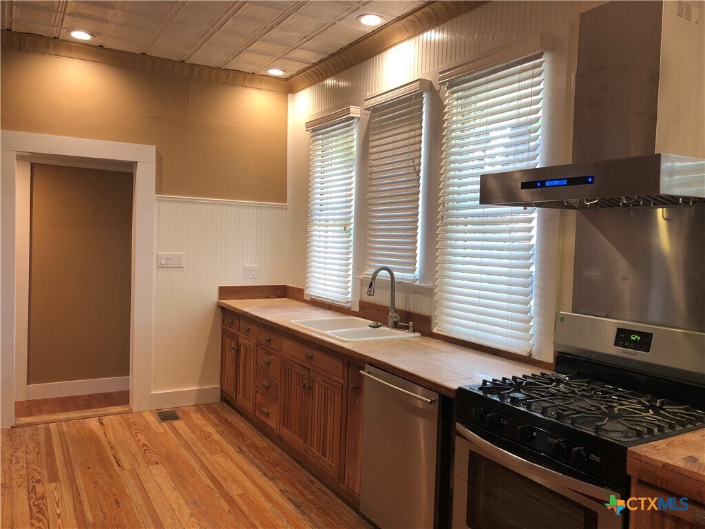 STUDENT FRIENDLY. Available July 2026. Located in the heart of the downtown historic district,just a short walk to downtown,Texas State University,and the San Marcos River. This property accommodates 4 tenants and is not subject to single-family zoning restrictions. Please assemble and bring your group of 4 roommates,with rent set at $925 per tenant,$3,700 total. Built in 1903,this charming Craftsman home features original hardwood floors,soaring ceilings,custom moldings,spacious bedrooms,and two large bathrooms. The well-appointed galley kitchen includes upgraded stainless steel appliances,and a generous utility room comes equipped with a washer and dryer. Multiple outdoor living areas,mature oak trees,a large barn or workshop space and ample parking. Come and enjoy the downtown historic district,welcome home.