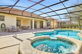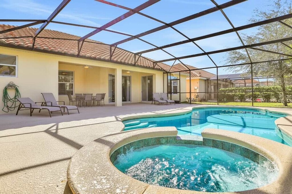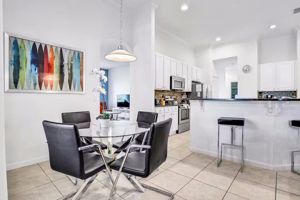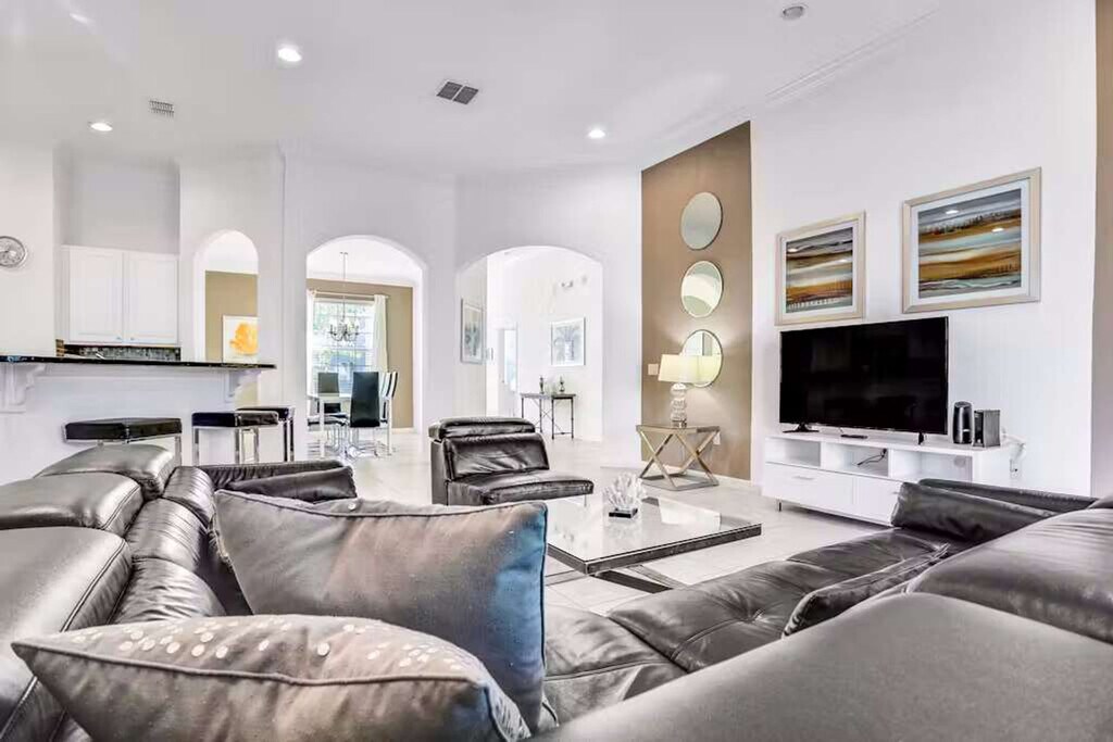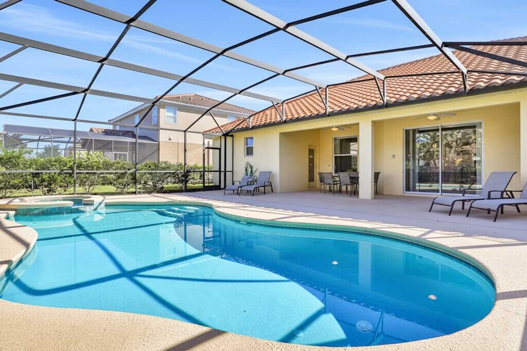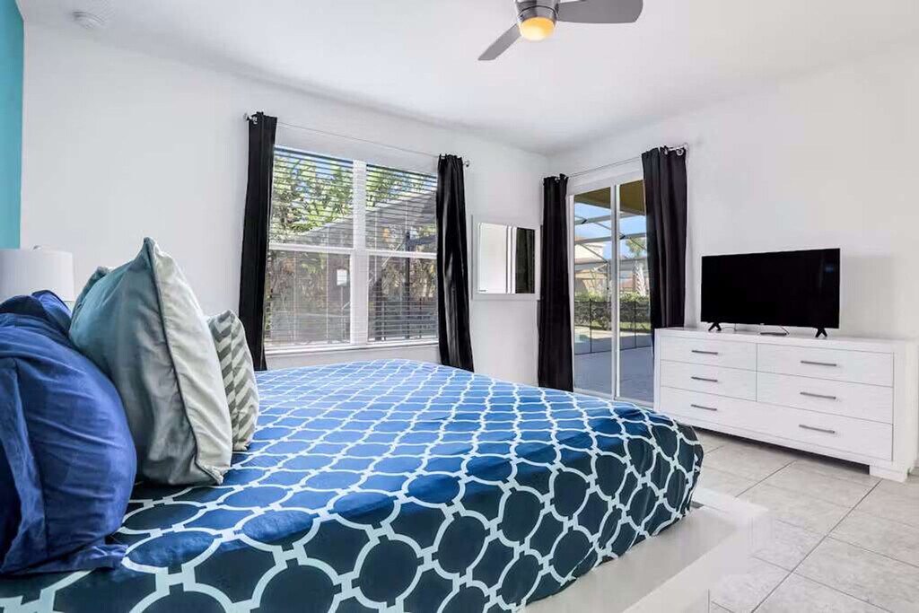 Feel at home in this spacious vacation home located in the beautiful Solterra Resort, offering 5 bedrooms and 4 bathrooms. This home features a comfy living area, a full kitchen with stainless steel appliances, and spacious indoor and outdoor dining areas. Enjoy the convenience of a free washer and dryer, along with access to outdoor pool loungers. The fully stocked kitchen has everything you might need to make a big breakfast. The family room is equipped with a flat screen TV and ample seating. Indulge in the luxury of a private pool with an option to add heat, perfect for soaking up the Florida sun. Enjoy exclusive access to the community water park and amenity center/clubhouse. If you would like to add pool heating to your reservation, please let us know in advance, and we can coordinate the set-up for you. The cost for this amenity is $35 per day of stay, which will be invoiced separately. Located in Davenport near theme parks, this vacation home is a short drive from many attractions. Disney Springs and Old Town are worth checking out for shopping, while Walt Disney World Resort and Disney's Animal Kingdom Theme Park are must-see destinations. Disney's Hollywood Studios and Epcot are also nearby. The home is 25 minutes from Disney, 30 minutes from Universal Studios, and 25 minutes from SeaWorld. Everything you need is at your fingertips, but if you do venture out, world-class meals are just a couple of miles from the resort. Solterra Resort is in a great location just 5 minutes from a supermarket and other stores, and Posner Park, with an IMAX movie theater and many other stores, is just 7 minutes away. Kissimmee Station is a 22-minute drive, and Kissimmee, FL (ISM-Kissimmee Gateway) is a 27-minute drive. Quiet hours are between 10 PM and 8 AM. The home can accommodate a maximum of 13 guests at any given time. Only the number of guests indicated on the reservation are allowed to stay overnight, unless otherwise agreed upon in writing. The number of vehicles on the property should never exceed 4 per reservation. Up to 2 cars may park in the driveway. There is absolutely no smoking and no drugs allowed inside the home or elsewhere on the property. In the event you stay beyond the original scheduled check-out time of 10 AM, you may incur a fee of up to $300. Failure to properly bag trash and dispose of it could result in fines up to $300. [SI]