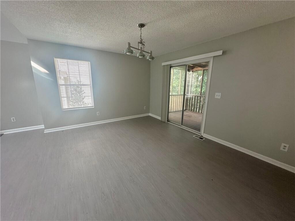 Welcome to a beautifully maintained 3-bedroom,3-bath duplex spread across two floors. The living room features a cozy fireplace and ceiling windows that flood the space with natural light,creating a warm and inviting atmosphere. The large dining room opens to a wooden deck,perfect for outdoor dining,relaxing with friends,or enjoying quiet mornings with your coffee. The kitchen offers plenty of cabinet and counter space,making meal prep a breeze. Each bedroom is generously sized,providing comfort and privacy for every member of the household. Freshly painted upper levels enhance the bright and welcoming feel throughout the home. Enjoy the convenience of nearby shopping,dining,and parks while living in a peaceful,well-kept neighborhood. This home perfectly combines style,comfort,and functionality—ideal for anyone looking for a move-in ready space in Kennesaw. Don’t miss the opportunity to make this inviting home yours!