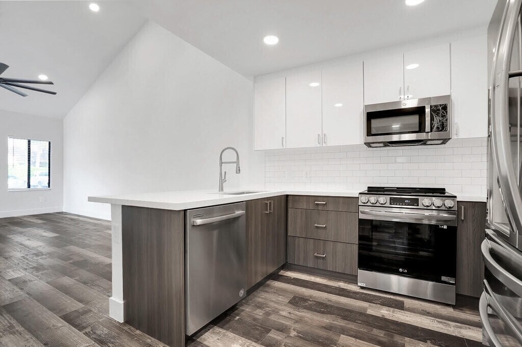 Spacious,beautifully remodeled 2-bedroom,2-bath home in West Palm Beach featuring soaring ceilings and a versatile loft. This move-in-ready property offers luxury vinyl flooring throughout,a fully renovated kitchen and bathrooms with quartz countertops and stainless steel appliances,plus an in-unit washer and dryer. Enjoy a large private fenced patio ideal for outdoor entertaining. Community amenities include a pool and tennis courts. Prime location with easily access downtown West Palm Beach,beaches,shopping,dining,and minutes from Palm Beach International Airport. MLS ID R11158051