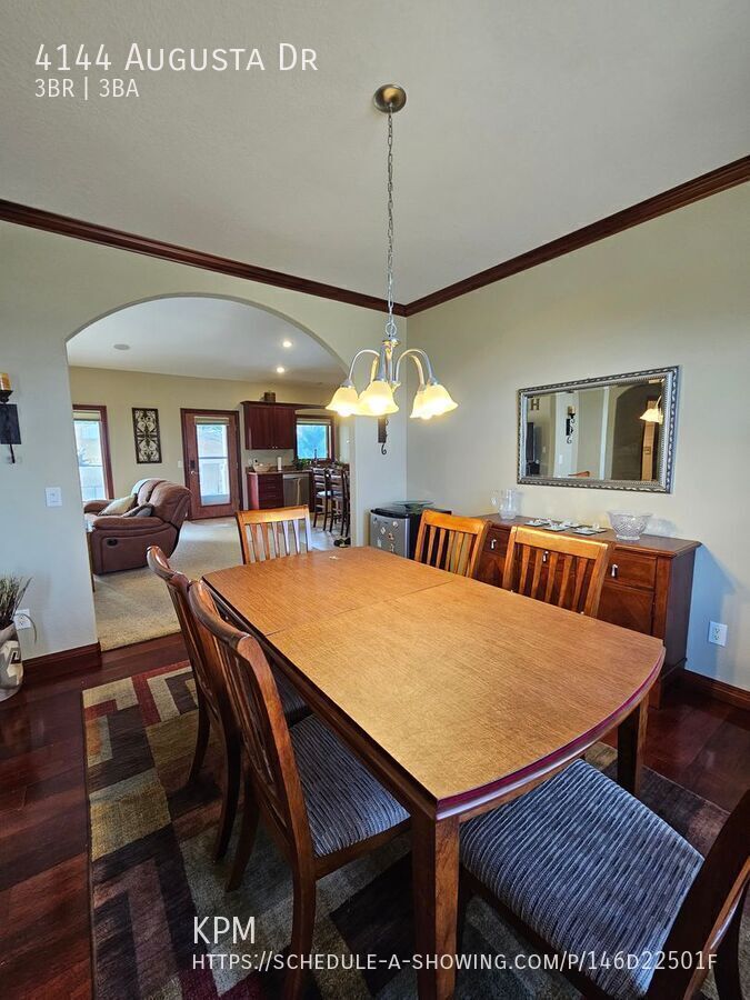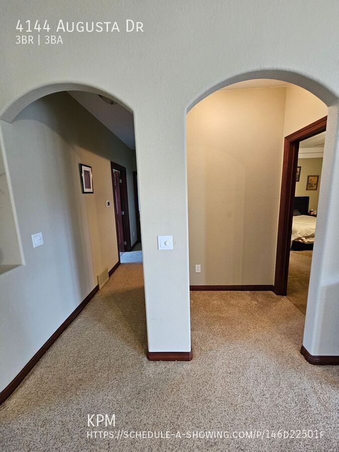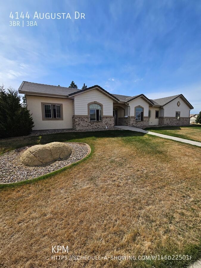Kahler Property Management invites you to take a look at this beautiful, 3 bed, 3 bath home located at 4144 Augusta Drive in Rapid City! This home was built in 2006 and offers 1,661 square feet of living space with a 3-car garage! Enjoy single-level living right by the golf course! Upon entry you will see the open concept living room and kitchen areas with a formal dining room. The kitchen is equipped with stainless steel appliances, including dishwasher and microwave, a large pantry with ample storage shelving, and an island for additional counter space and storage. Off the kitchen is the large 3 car garage, the guest bathroom, and laundry room with provided washer and dryer. Down the hallway you will find the second guest bathroom, the first and second bedrooms, then the primary bedroom with en-suite bathroom and walk in closet! Some other great features include gas heat, central air, gas fireplaces in the living room and primary bedroom, and a water recirculatory system! Please visit Kahler Property Management's website to ensure accuracy of this listing. All of our properties are SMOKE FREE! This home is pet negotiable with a $300 pet deposit per pet and an additional $25/month per pet. Tenant is responsible for all basic utilities. Lawn care, snow removal, and BluePeak internet INCLUDED!